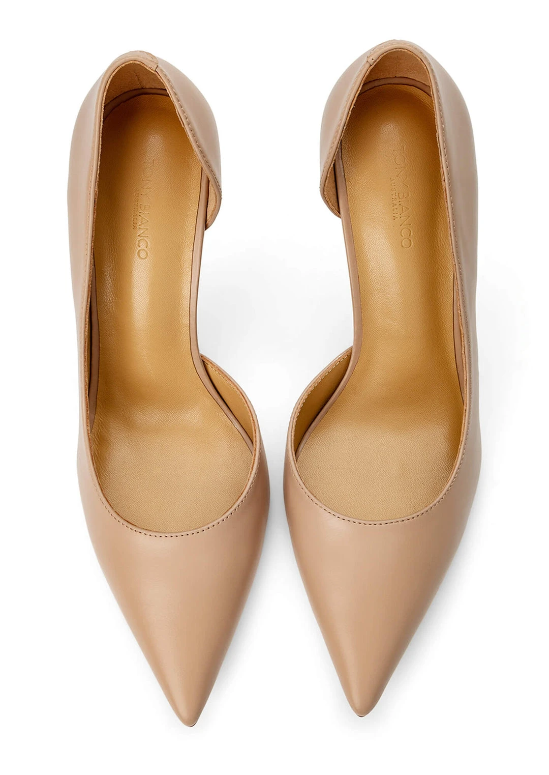 For a court shoe that exudes femininity look no further than the Alyx tonal stiletto heel. Showcasing a perfectly pointed toe-shape, these pump shoes are designed with an ultra high stiletto heel, a curved vamp and is finished with a tonal nude hue. Pair with fitted pants and a blazer for a corporate work shoe option.
