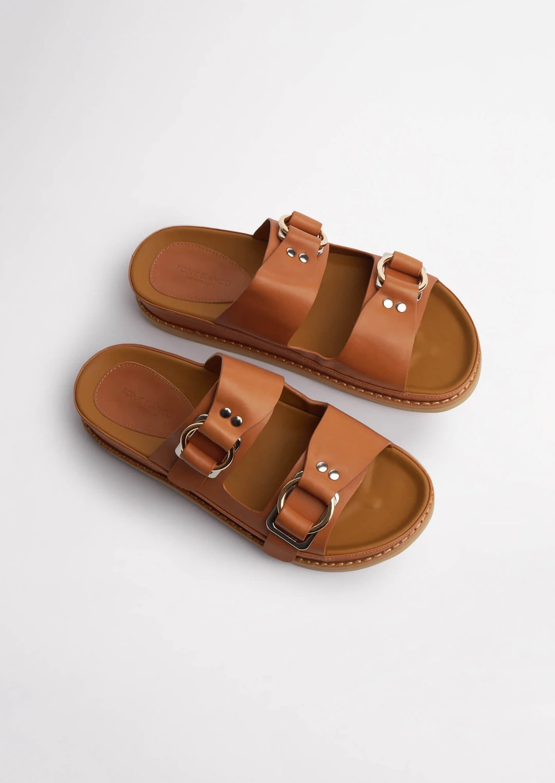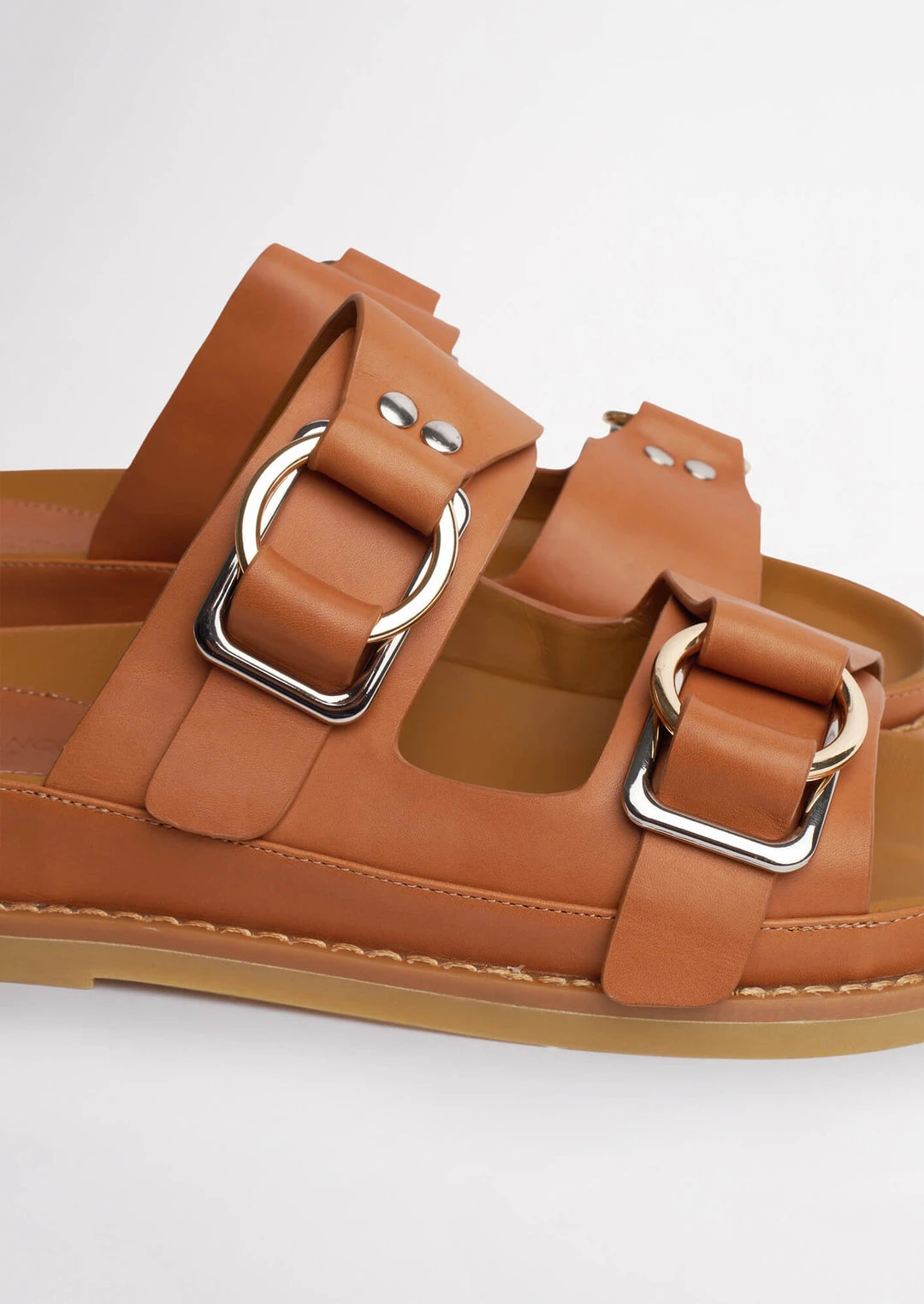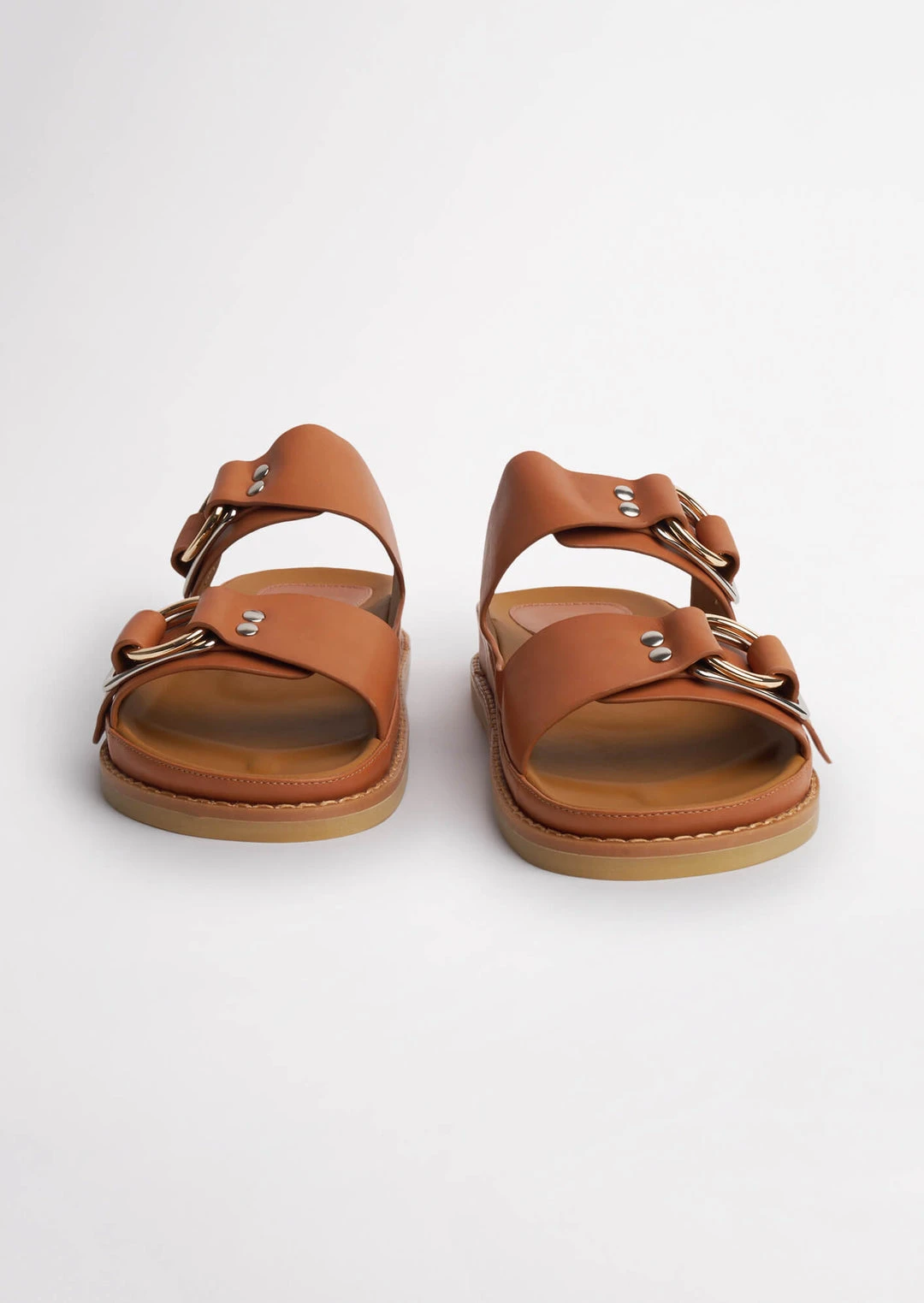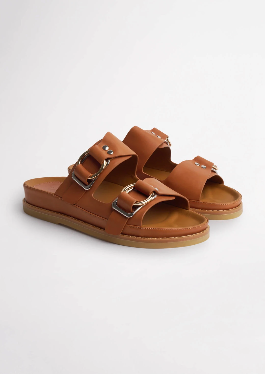 Introducing your new ride or die, Hunter. The flat slides designed for summer-time adventures, around-the-house wear or for a day full of errands – whatever your reason, Hunter has you sorted. Designed with a flat cushioned foot-bed and a thick chunky sole, alongside a round open toe and a flattering two-strap leather upper and all new leather lining. Finished with silver-toned hardware and a gold toned circular ring.