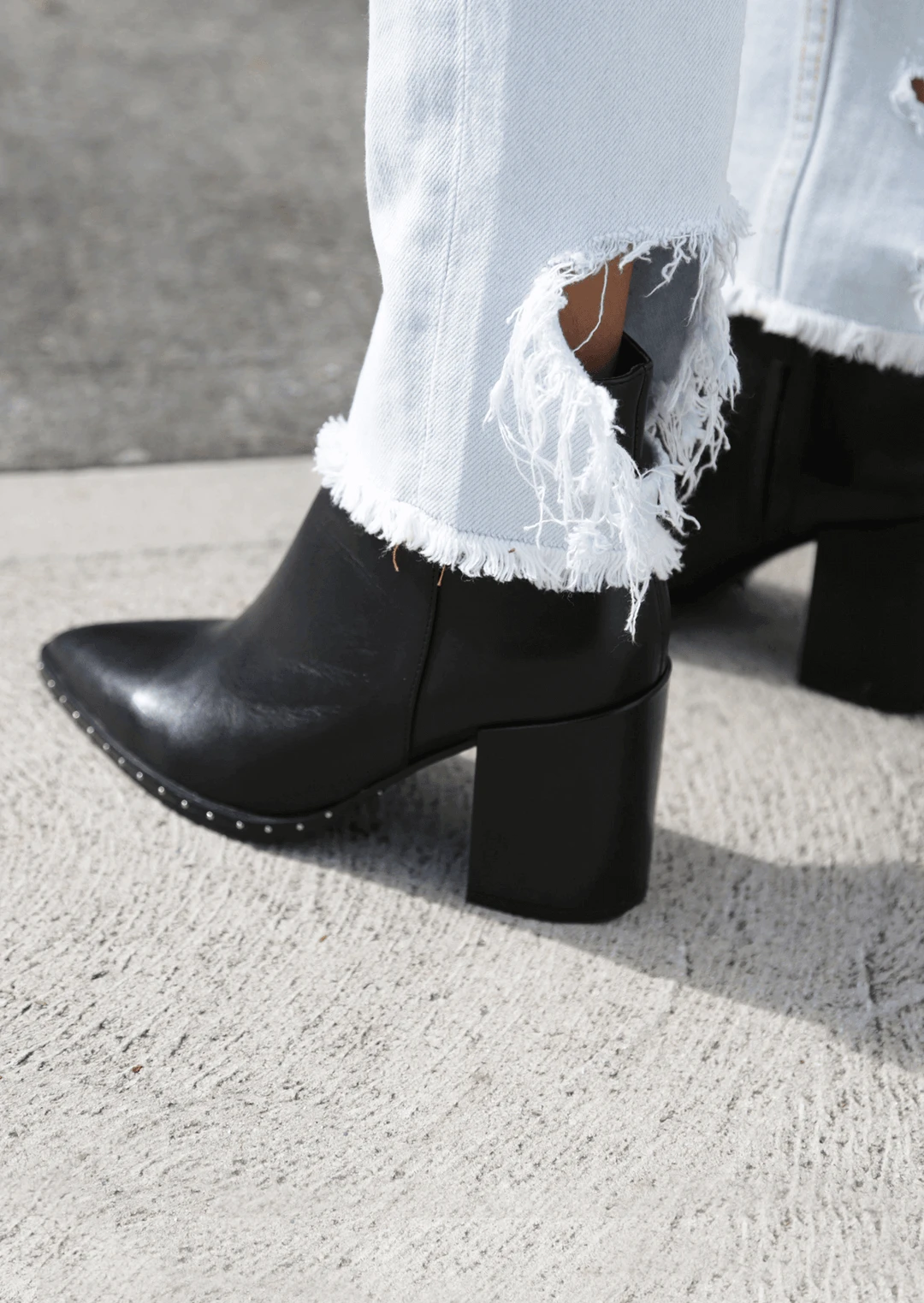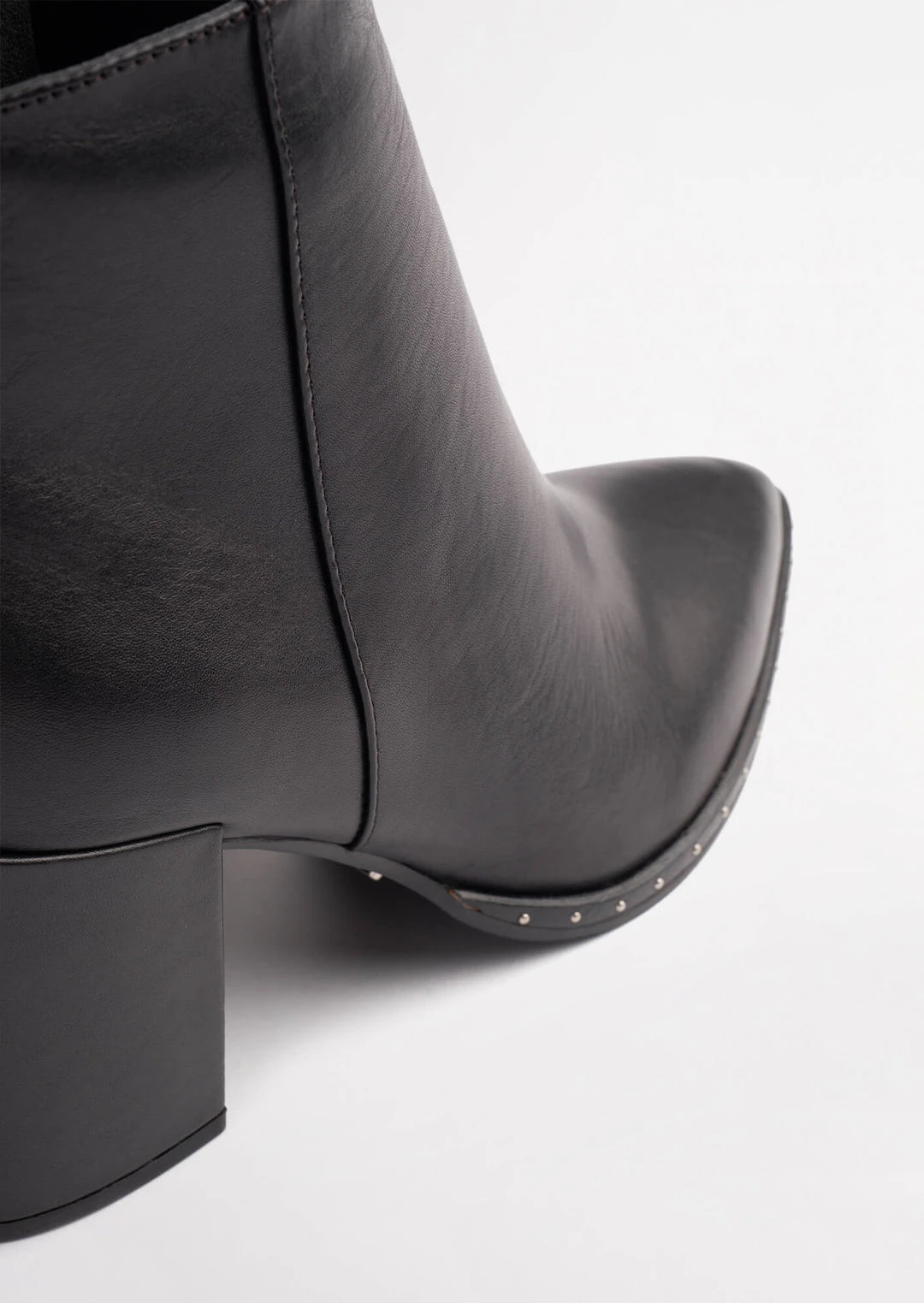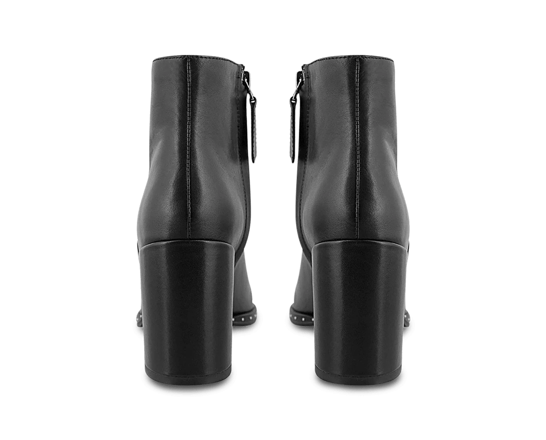 Easy to love and style, the ever-chic Bailey boot will soon become an everyday favourite. Showcasing a pointed toe highlighted by silver studded hardware this boot features a leather covered 8.5cm heel and inside zip.