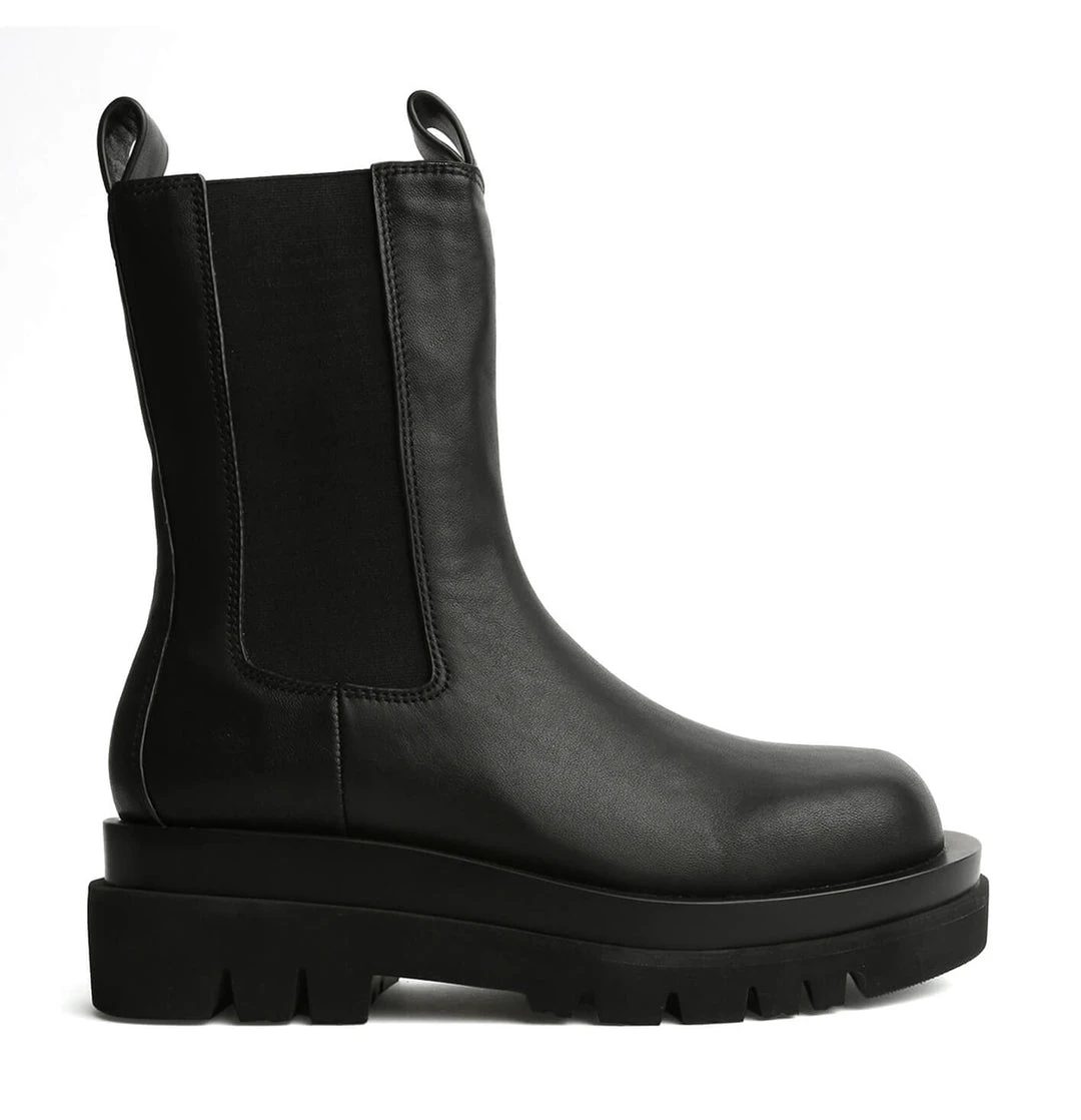 The boot of all boots is here. Meet Boxer, she’s our newest combat ankle boot with an edge. Designed with a rounded toe, an exposed chunky sole, side gussets with an inner zip to the ankle and twin pull tabs at the top. Finished with our all new leather upper and lining, alongside a cushioned foot-bed, this is a style not to be missed.