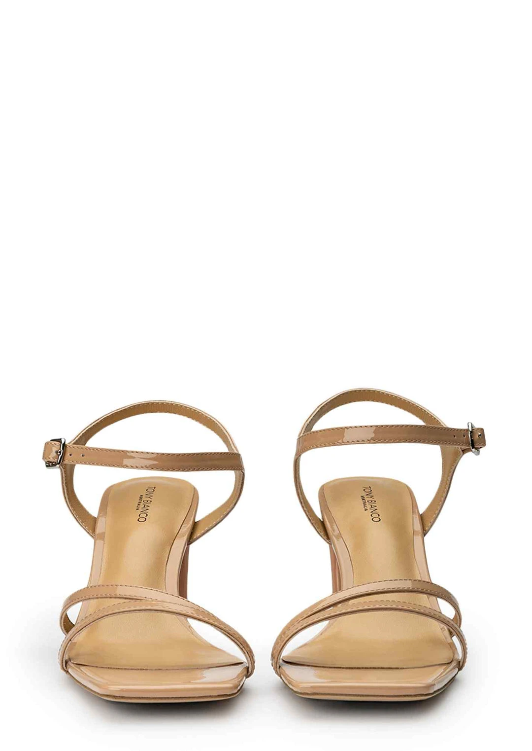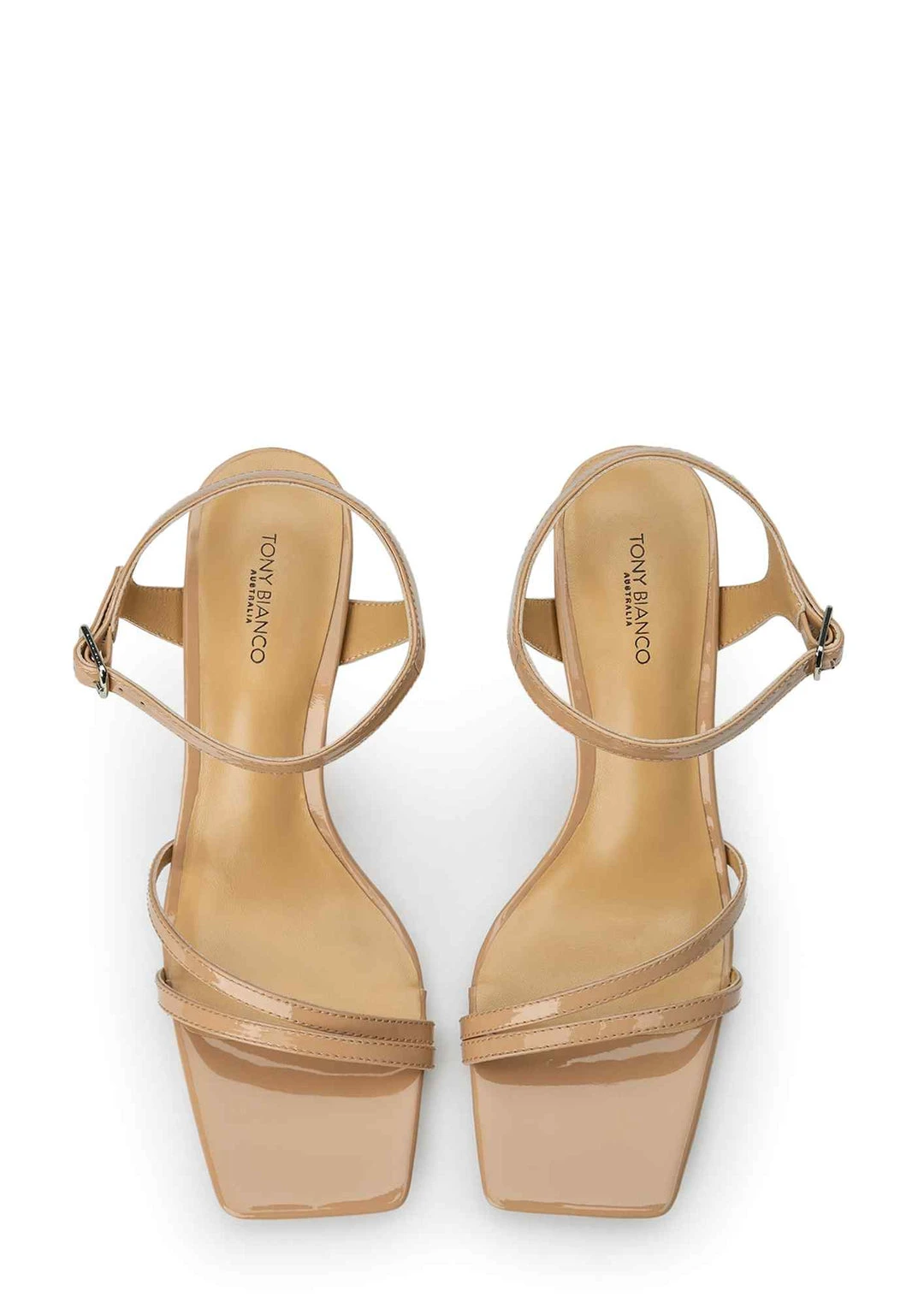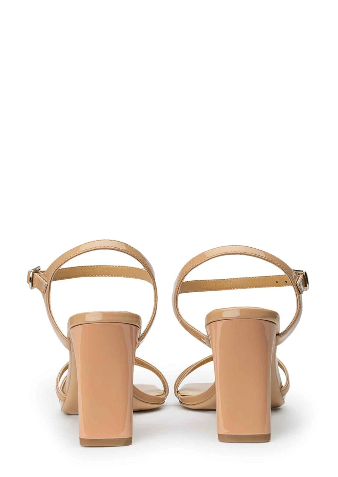 Complete your look with our Casa nude strappy heels. Finished with a hi-shine patent leather, these heels are versatile and are a perfect option for bridesmaid shoes. Featuring slender foot-framing straps, an adjustable and secure ankle strap, these babies are designed to take you from day-to-night.