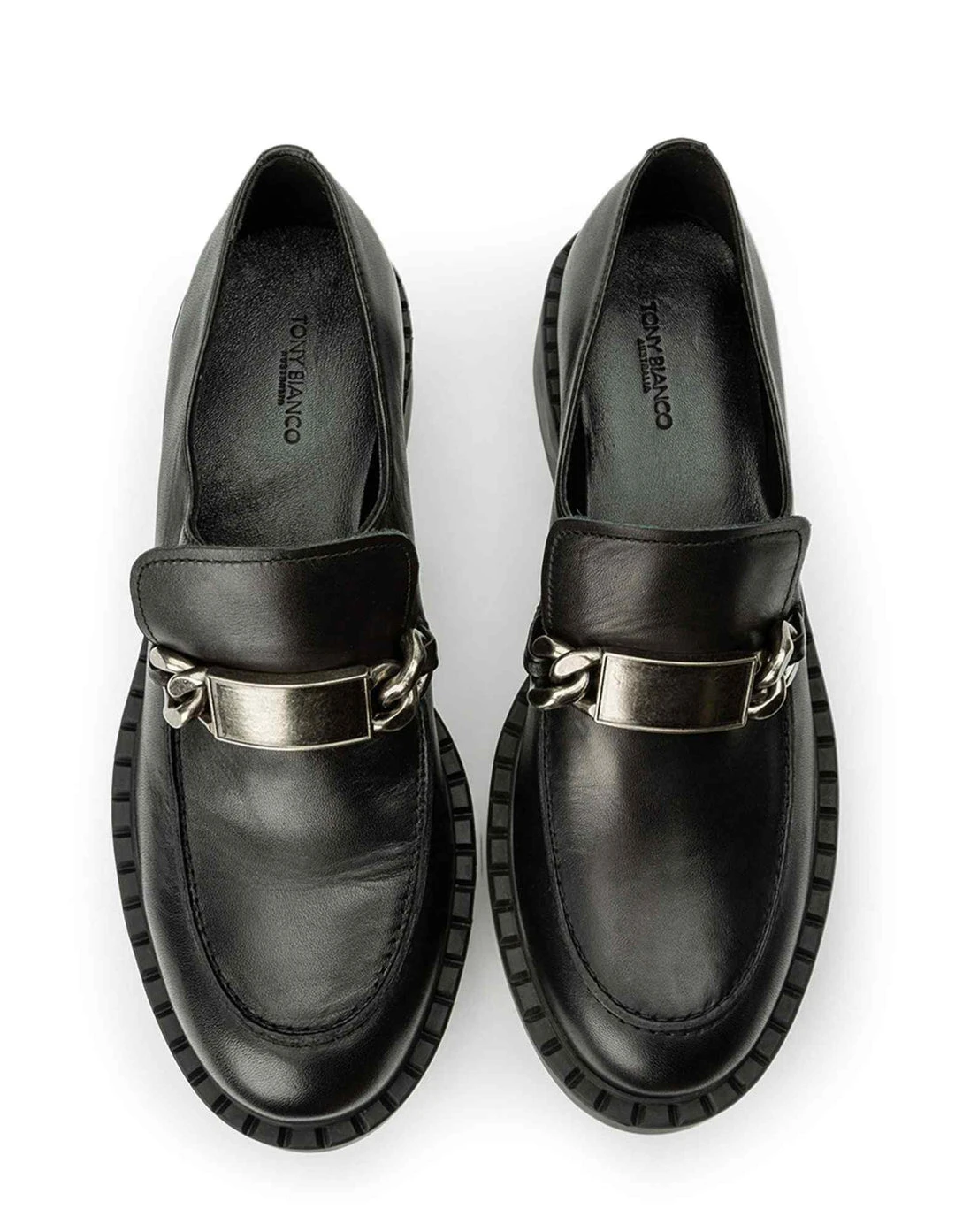 All about the edge with the new Charlie leather loafer. Showcasing a grungy metal detail, classic leather panelling and chunky lower heel to make this a contemporary take on the trending loafer.