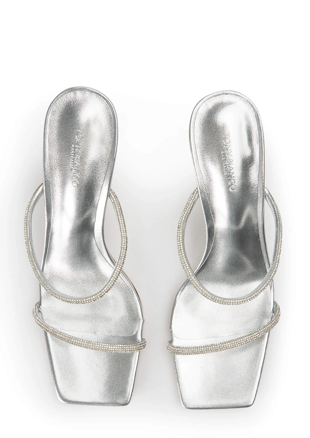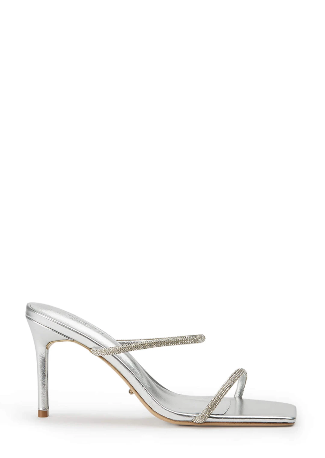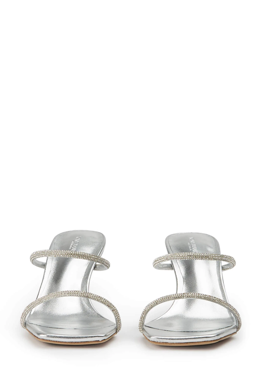 It’s a slender sensation with Chase the silver metallic leather mules. Showcasing a diamante encrusted upper, squared-off silhouette and lower heel make this a chic and timeless essential. Pair with a shorter hem to let the shiny shoes do the talking.