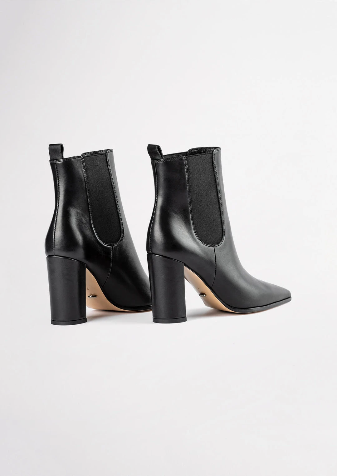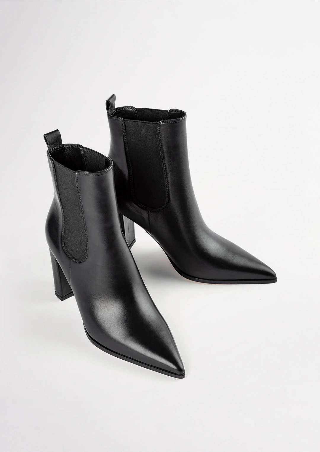 Sleek and en pointe, the Easton black leather ankle boot is ready to be yours. Showcasing a minimalist design with a long pointed toe shape, a fitted upper, twin elasticised panels and a leather pull tab to the centre back for an easy pull-on-and-go wear. Finished with a quality leather upper, lining and cushioned sole, you won’t ever want to take these babies off.