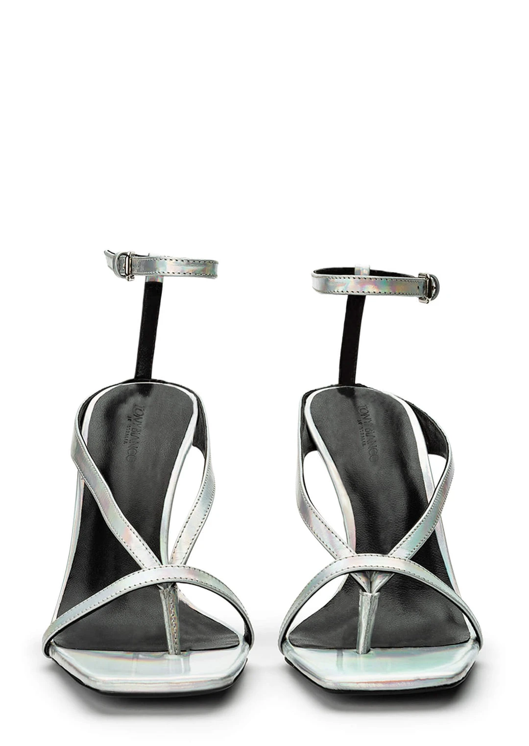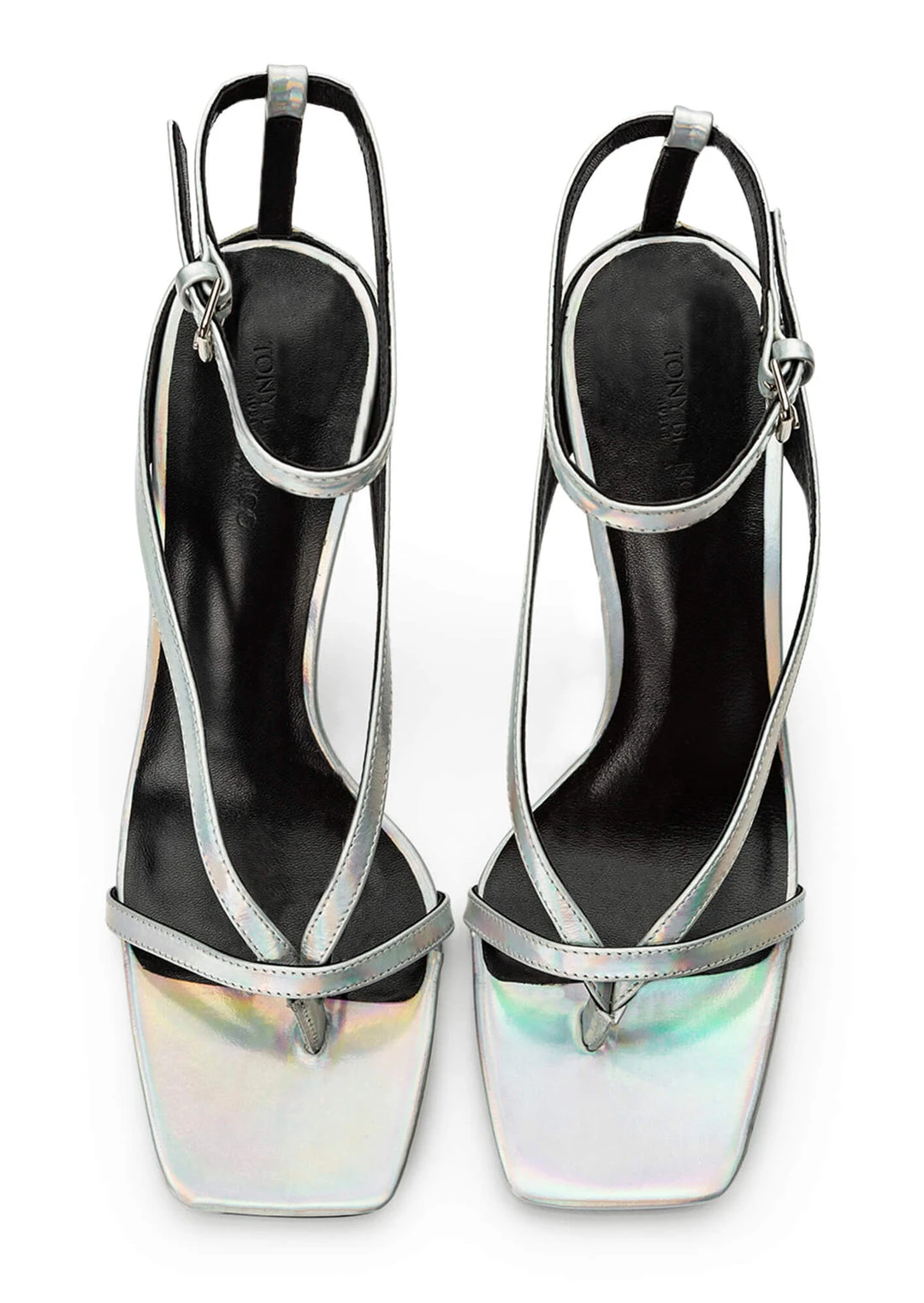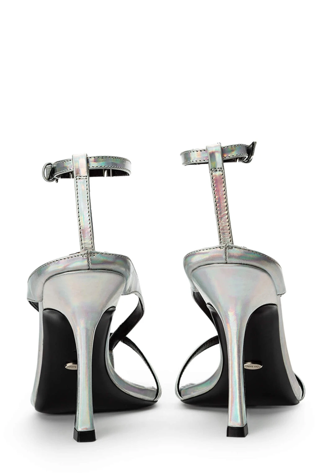 Everyone loves a metallic heel. Meet our Faythe strappy heel in our newest colour, silver illumine. Featuring flattering foot framing straps, an on-trend squared toe-shape, a secure silver buckle and an ultra high 11cm stiletto heel.