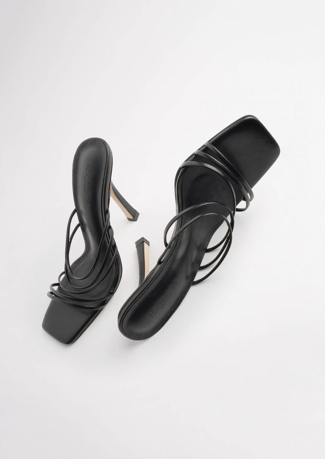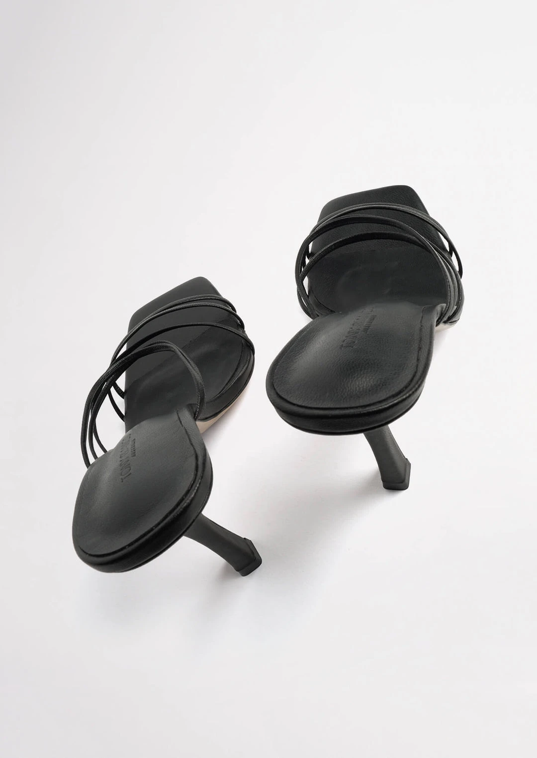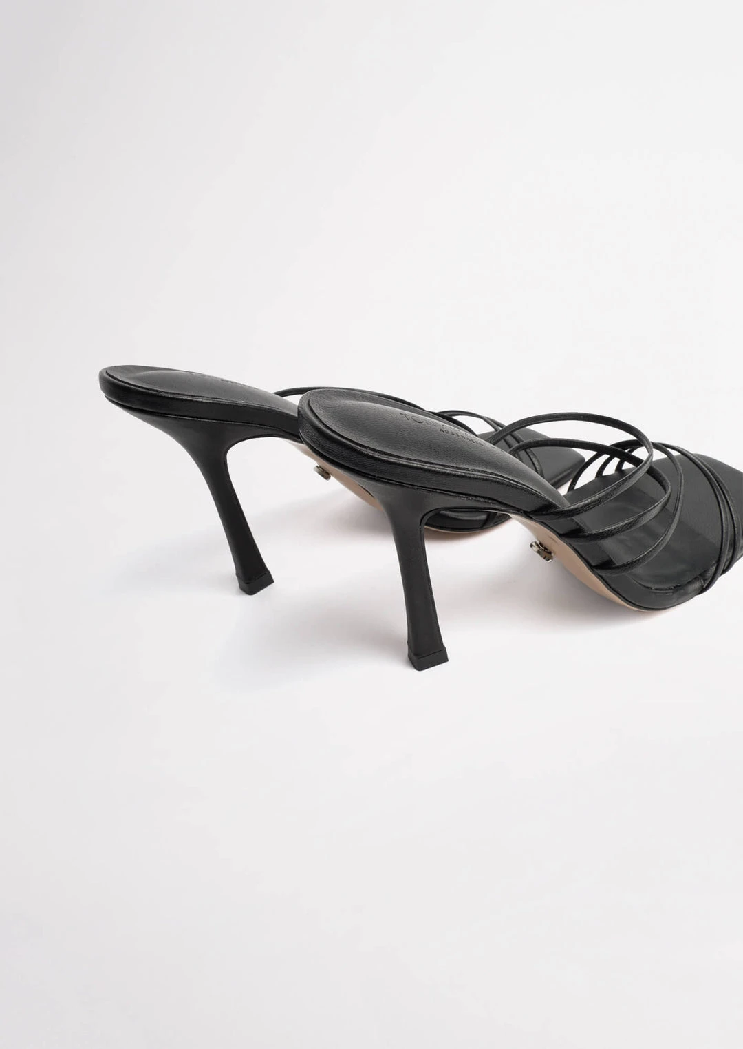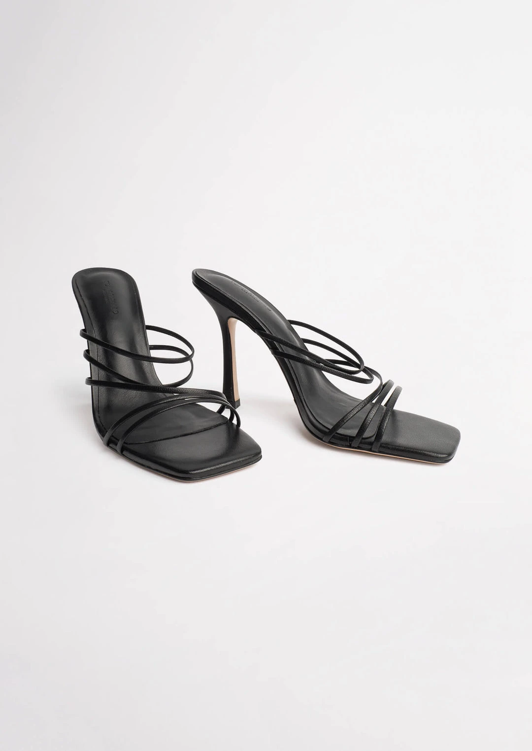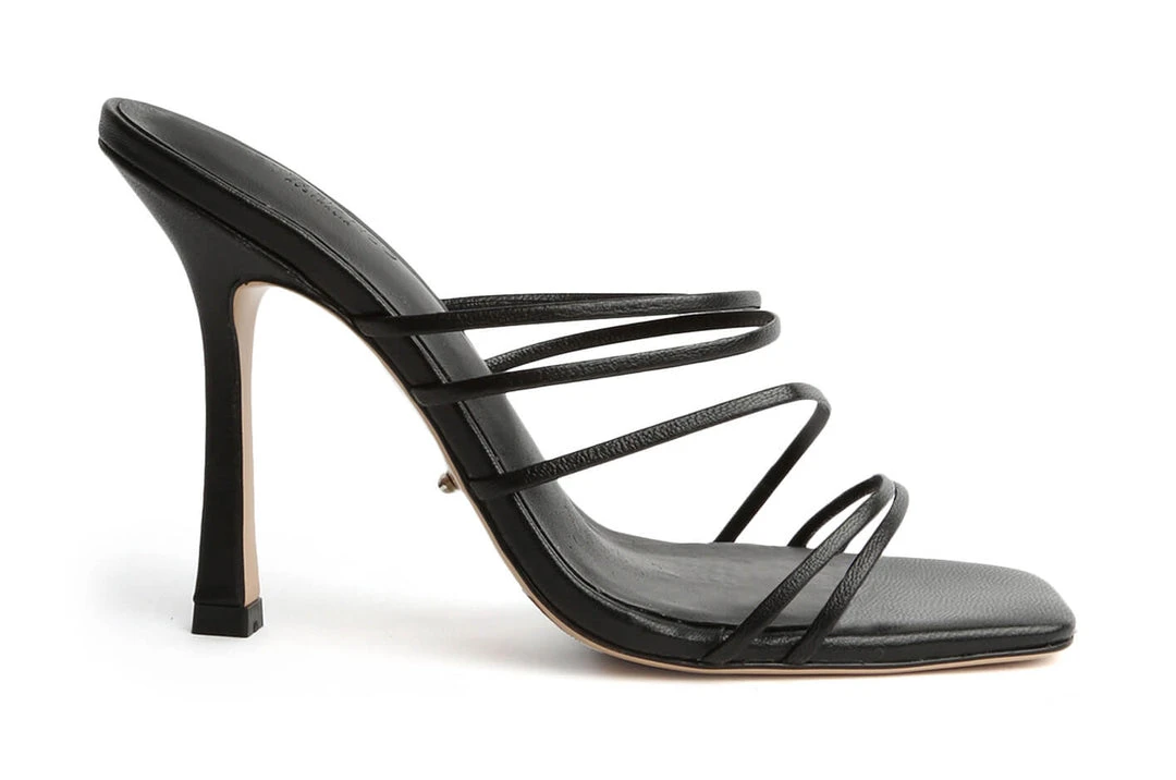 Dress to impress with the Foxie mules. Designed with multiple slender cross-foot straps, this slip-on style features a striking squared toe-shape, a comfortably padded foot-bed and is set atop a 10.5cm stiletto heel.