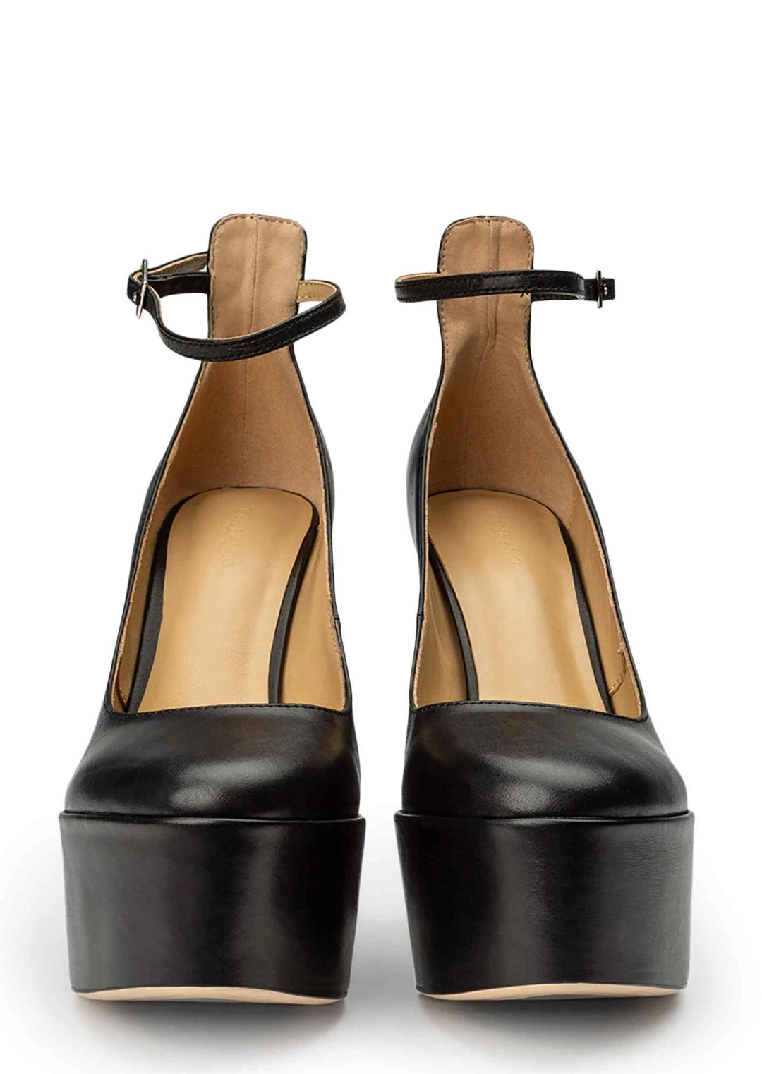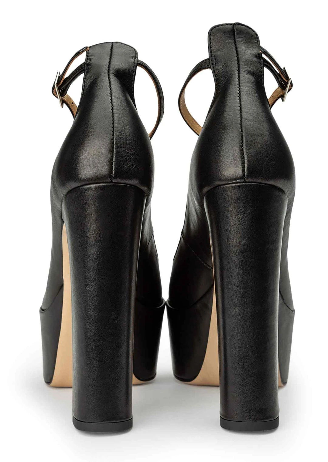 Elevate yourself with our newest love, the Jaguar black platform heels. Featuring a sleek closed toe, a thin foot-framing ankle strap and buckle alongside an effortlessly chic platform sole. Finished with a quality black leather upper and sturdy block heel, let this be your new go-to.