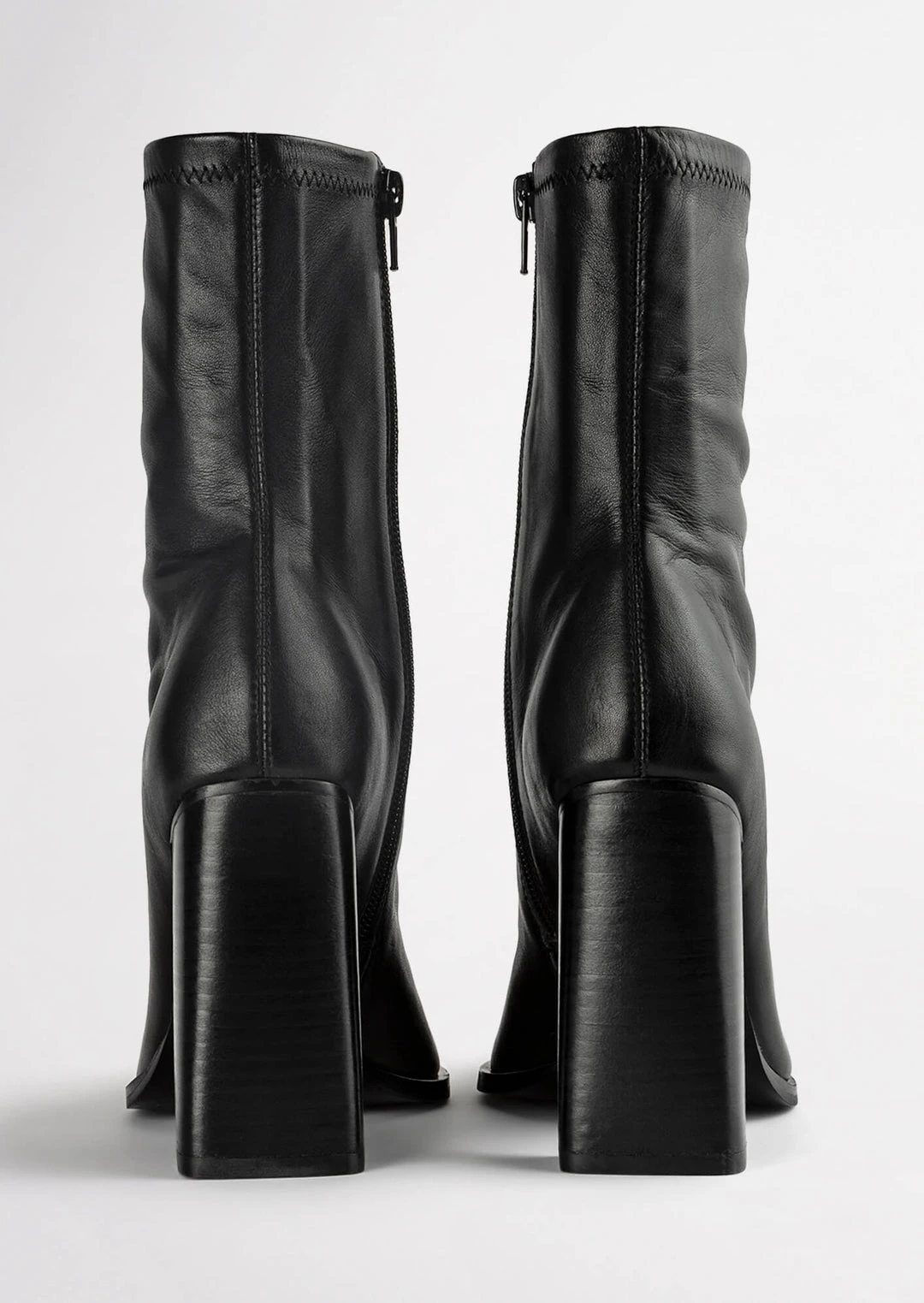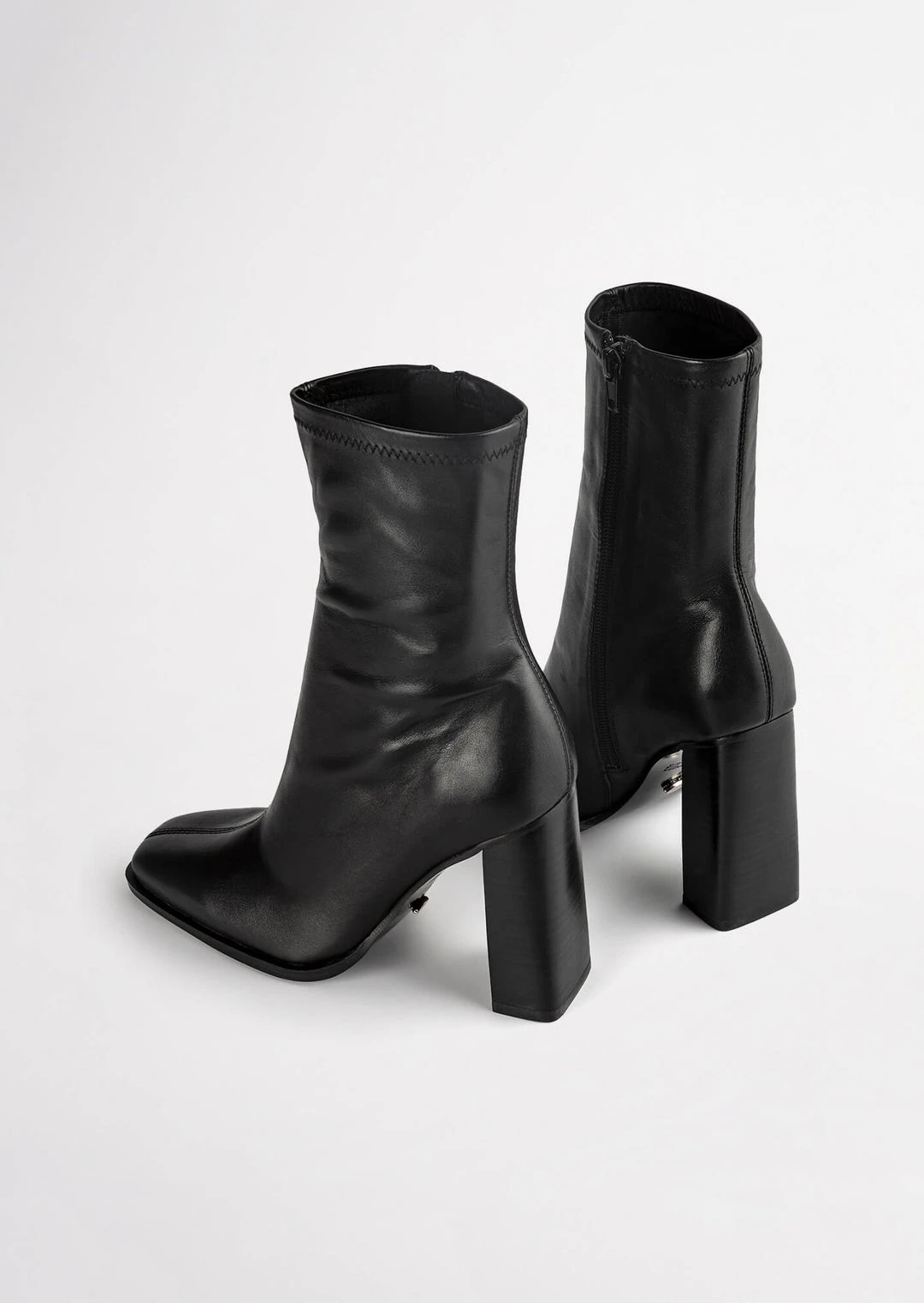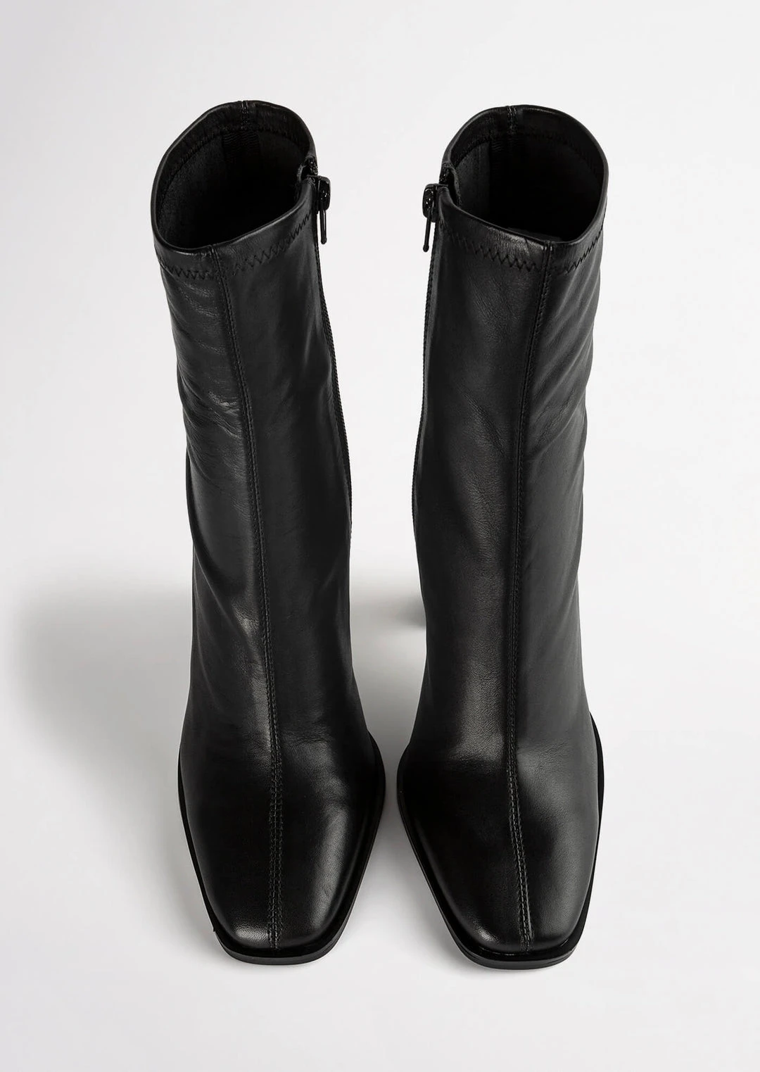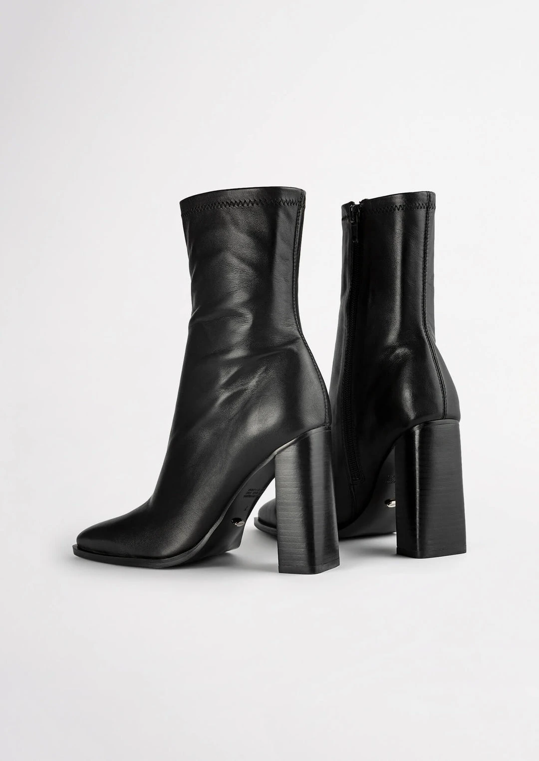 Stand-out from the rest this winter with our Ines heeled ankle boot. Back and better than ever in a brand new black leather, this style features a tall block heel with a slightly squared toe, a genuine leather upper, lining and cushioned sole.