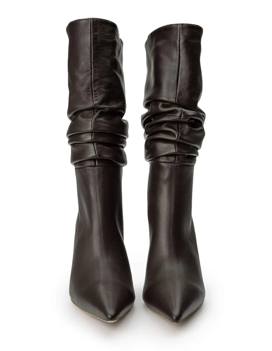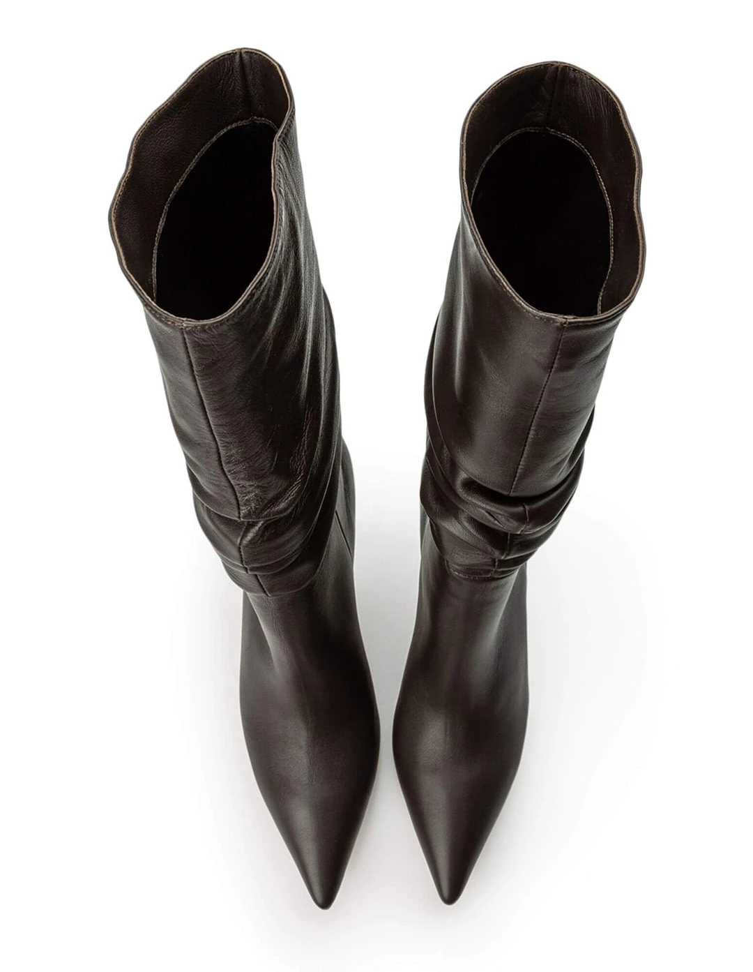 Layer up with the new Kerri leather boots. The ruching design creates a textured take on a classic style, to bring innovation to your winter wardrobe. Combined with a chic stiletto heel and smooth chocolate leather, let these be your outfit statement.