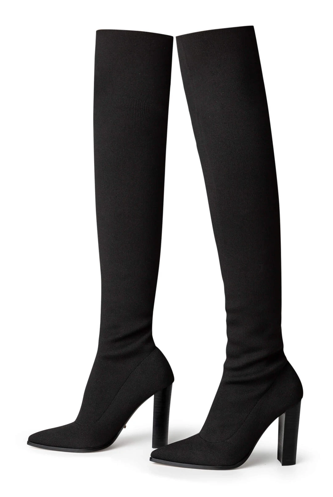 Tony Bianco Lucca Black Sock Knit 10.3cm Long Boots