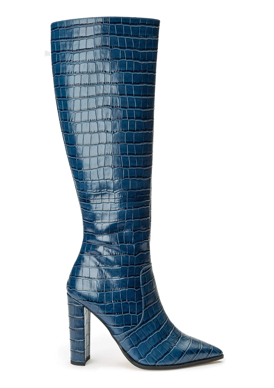 Tony Bianco Lucille Blue Croc 10.3cm Calf Boots