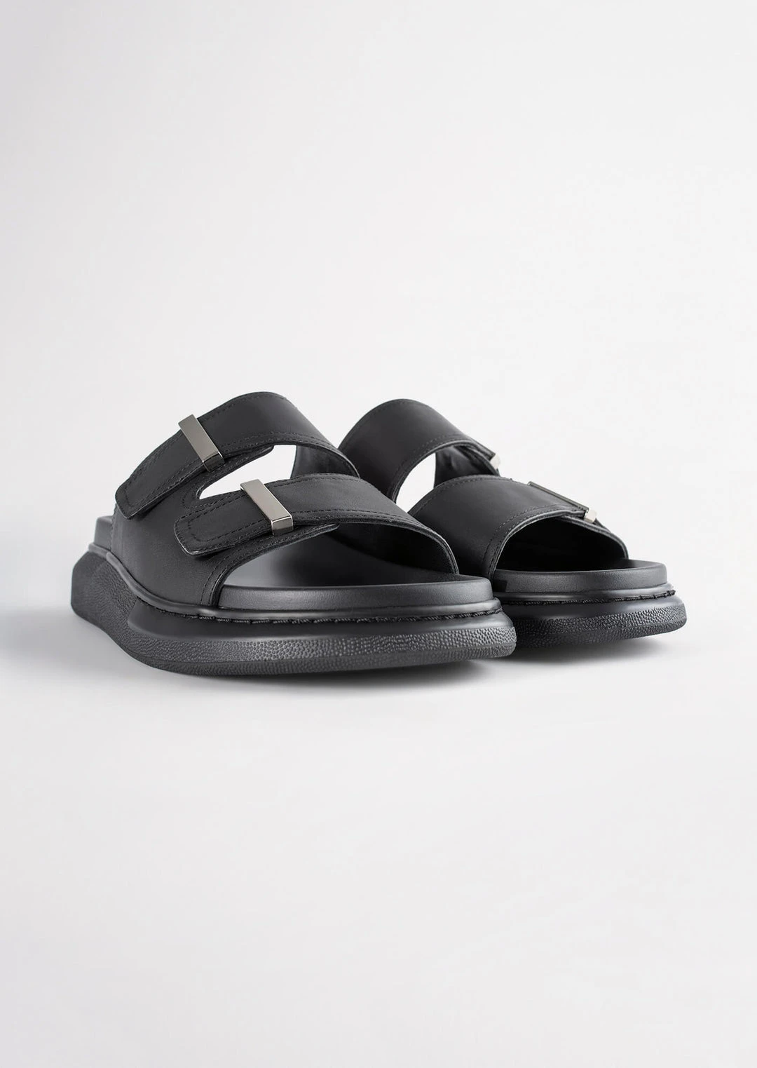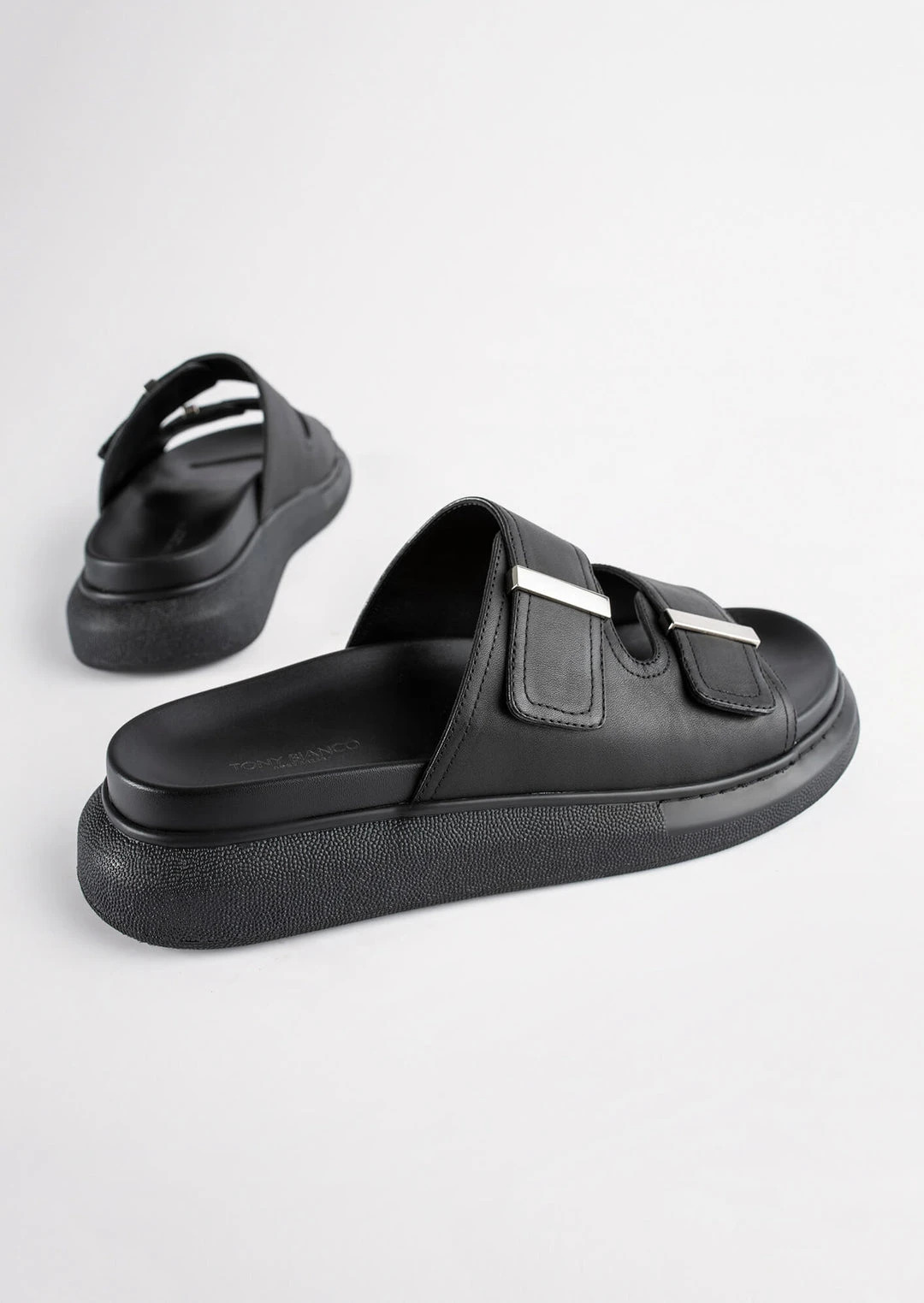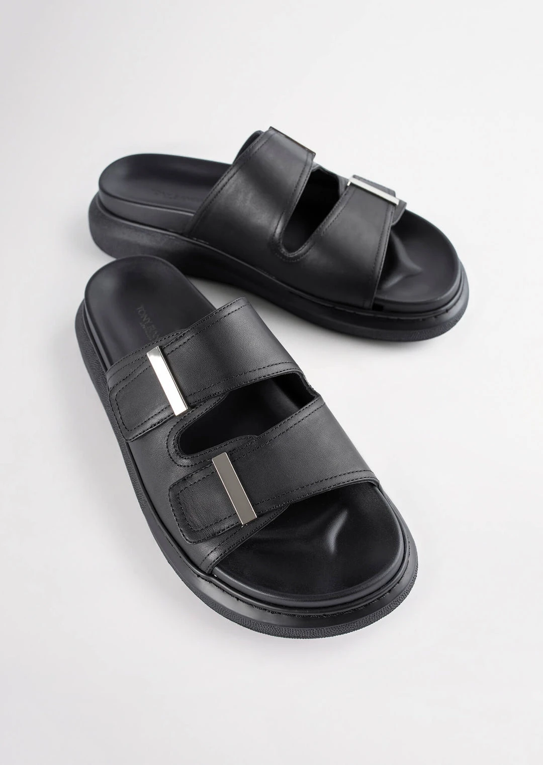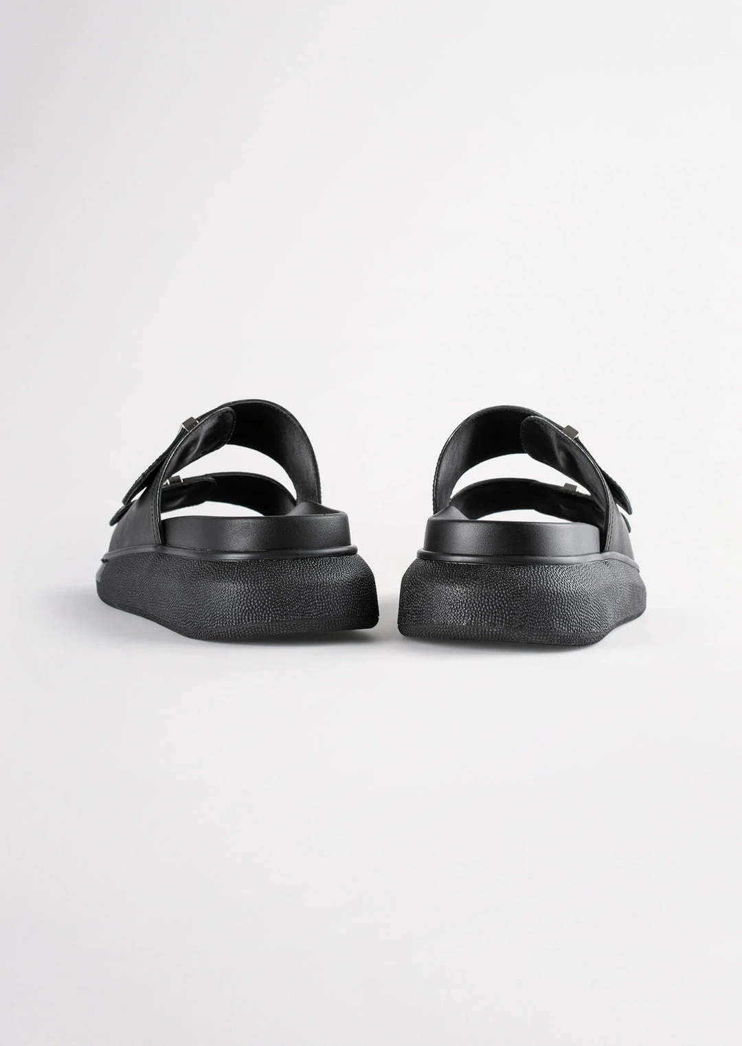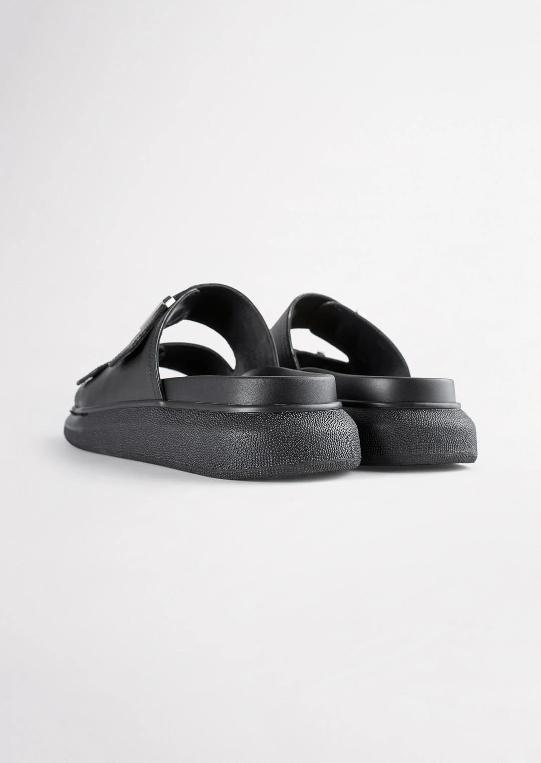 Slip into instant style with our Maja slide in black. Featuring two leather straps secured down by sleek silver hardware. Set on top of a platform sole, they’re a step up from your usual basic. Trust us, you’ll be wearing these all Summer long.