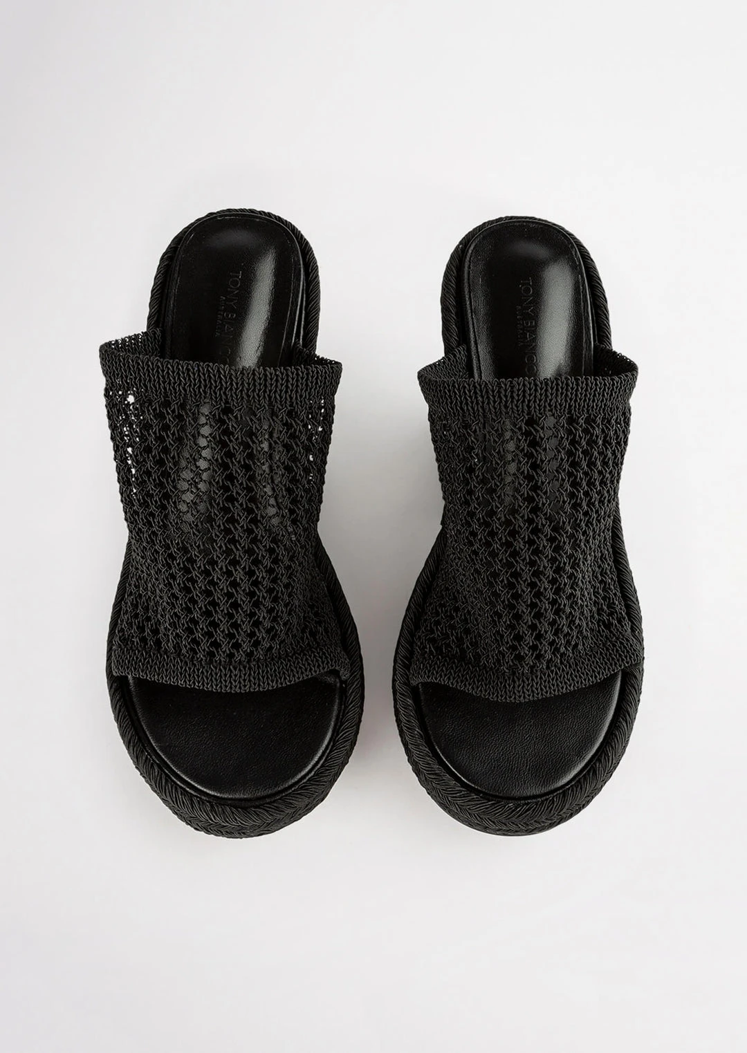 Slip effortlessly into 70’s style with our Matrix mules. A wedged espadrille mule with sleek black colouring, a chunky platform, a subtly curved heel shape and a luxe woven fabric upper. Pair seamlessly with jeans or a breezy dress for the ultimate summer go-to.
