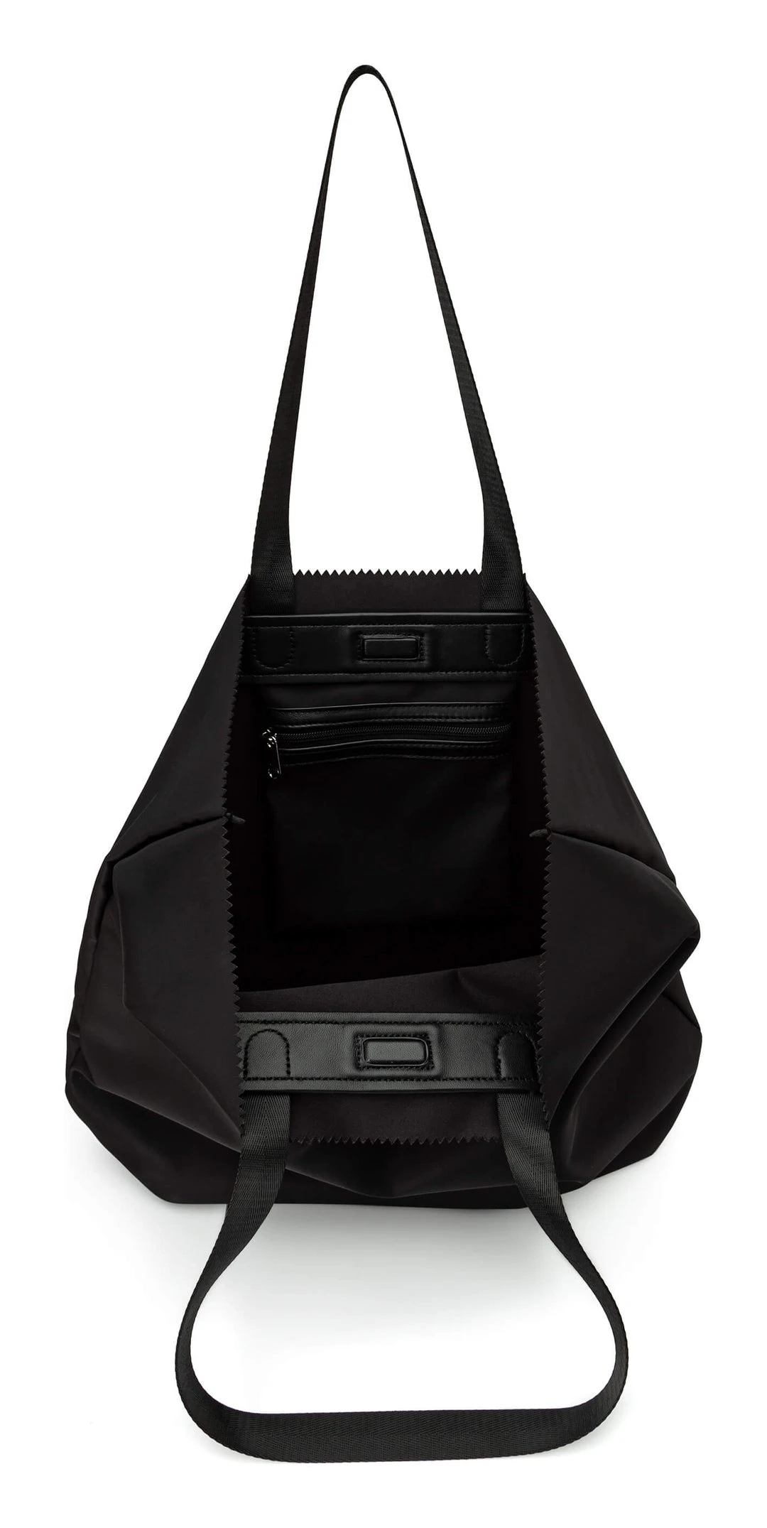 Introducing the best in women’s tote handbags. Say hello to the Miami black tote bag for women. A sleek and simple bag featuring a large squared body, twin black over the shoulder straps and a secure inner compartment to keep your smaller essentials safe. Please note, this style is unlined and features a magnetic closure.