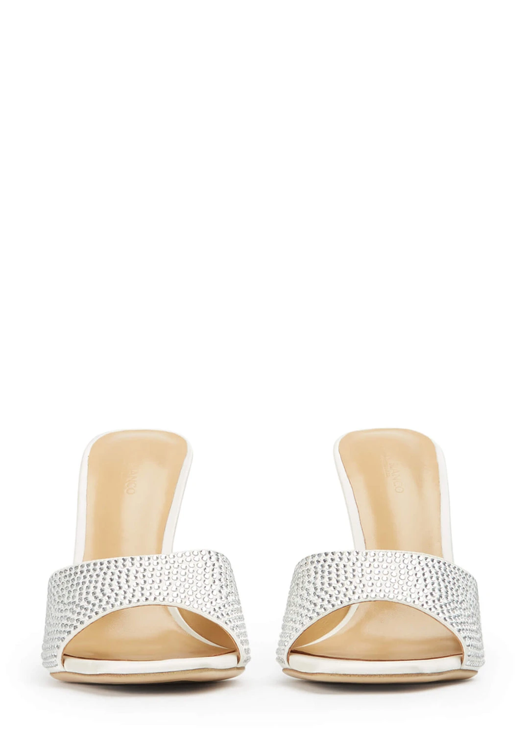Slip on the Serri ivory mules and make a statement this season. Showcasing a lux hourglass stiletto heel, cushioned sole and embellishments from head-to-toe, these striking bling heels are ready to steal the spotlight.
