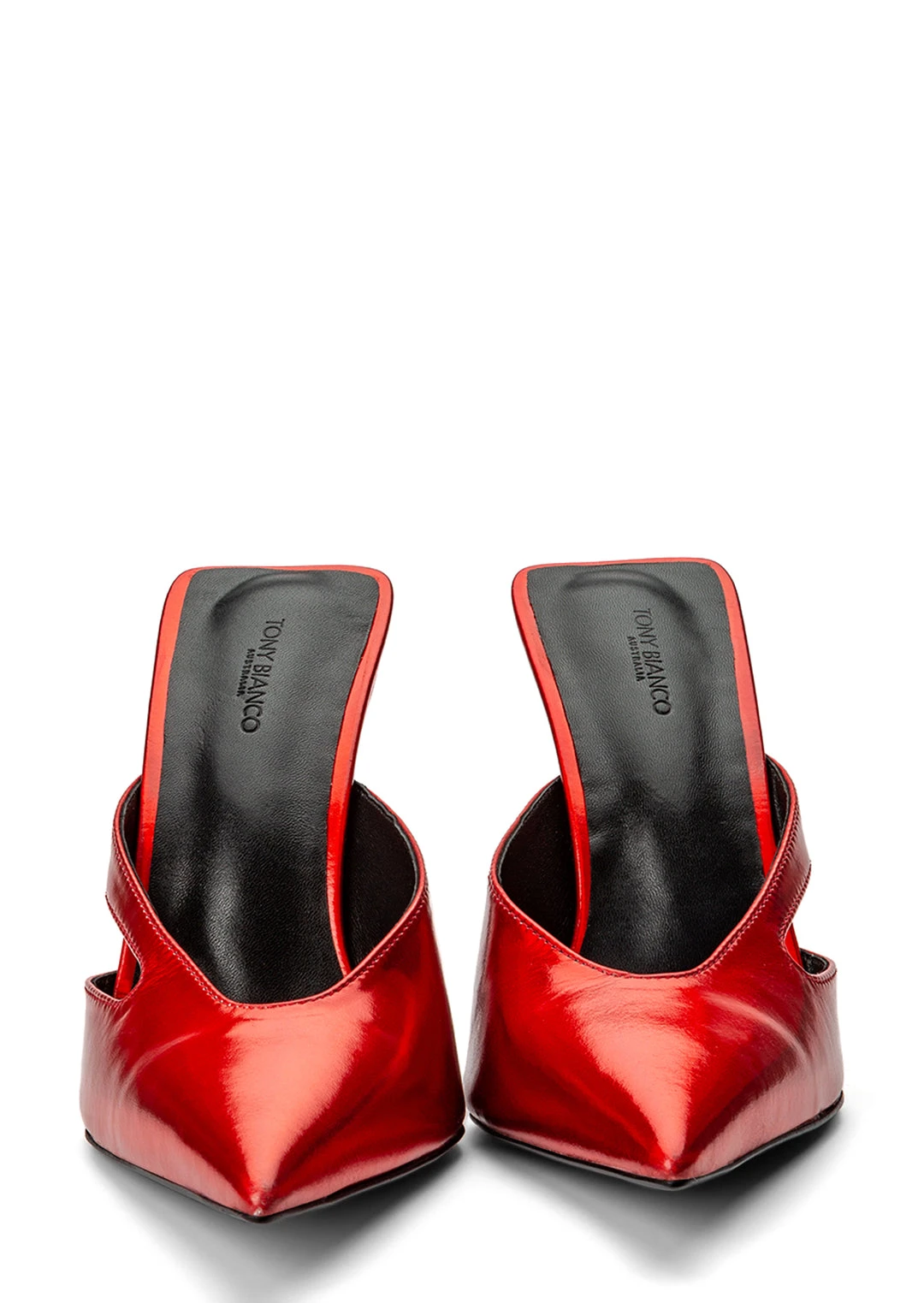 We’re seeing red with the new Princess heeled mules. Donning a vibrant cherry leather with a sleek stiletto heel, this style is sure to make a statement this season.