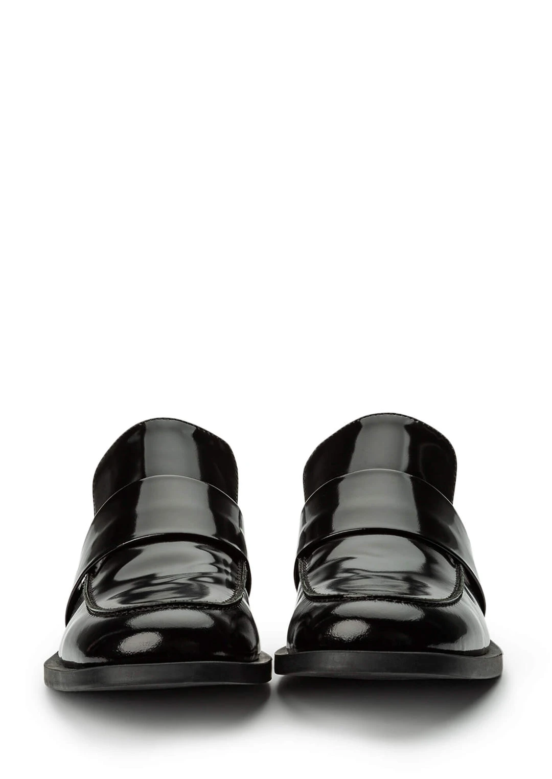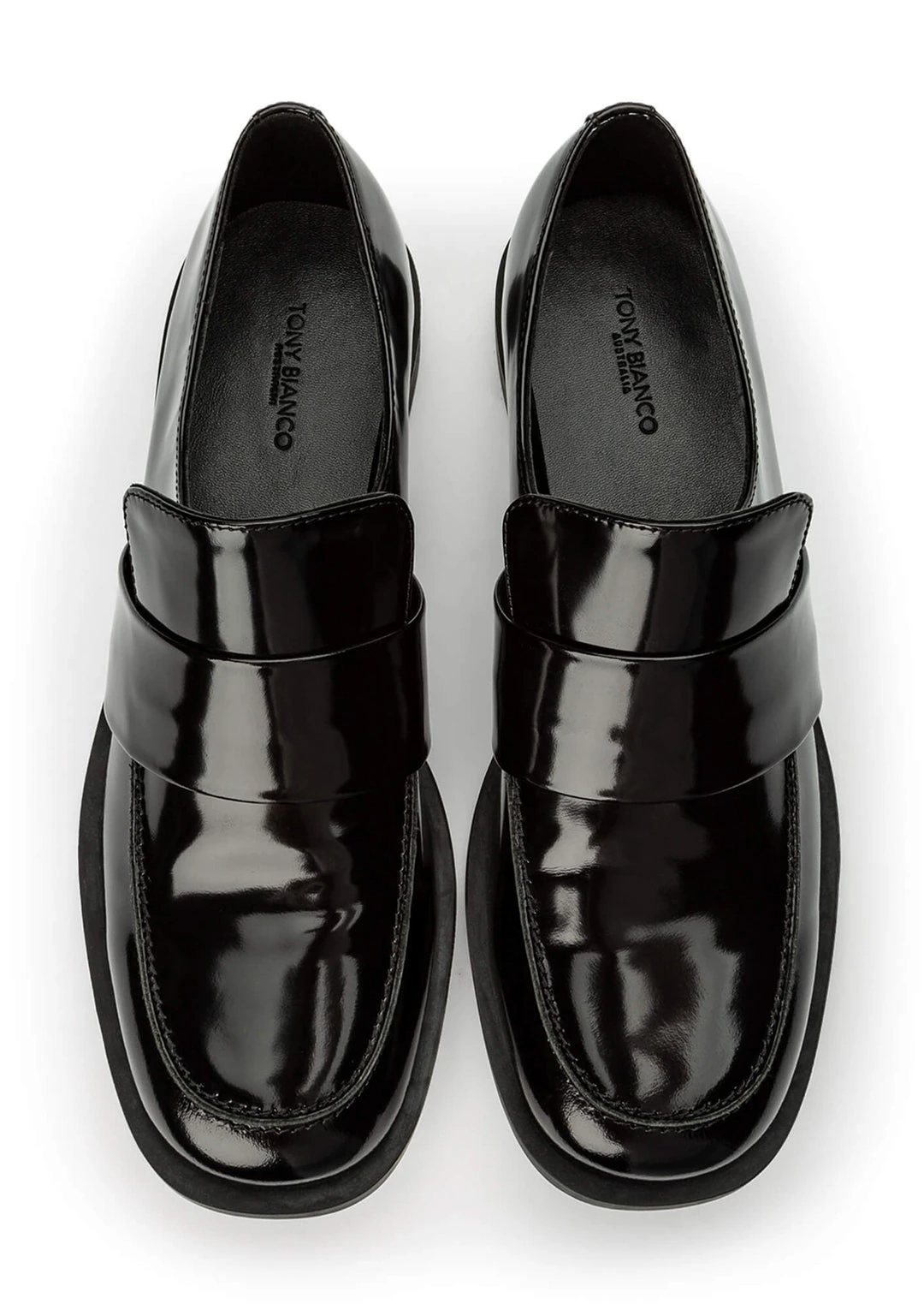 Looking for the perfect black loafer? Meet Rovin – designed for work and play, this flat black shoe features an almond toe-shape with a high-cut vamp, subtle panelled detailing with a pared back rubber sole.