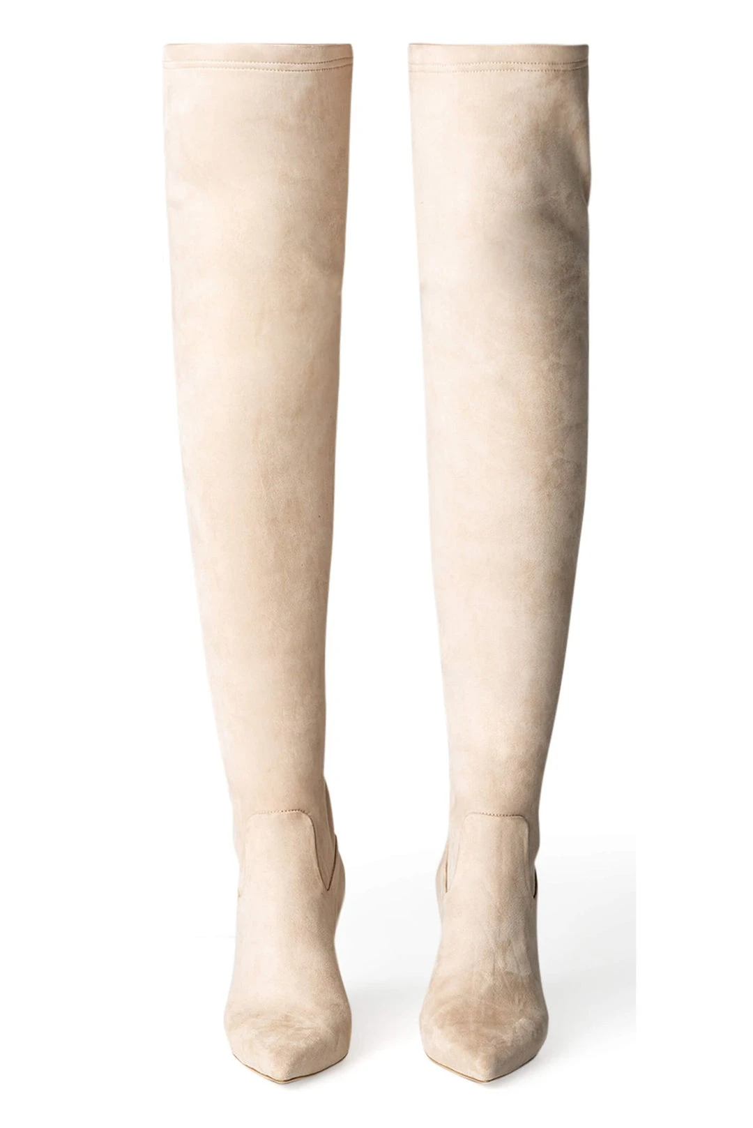 Reach new heights in the Estella over-the-knee stretch boots. This elevated thigh-high style dons a pointed toe, block heel & stretch calf to make these a chic addition to your collection. Pair with a mini or your favourite jeans for the ultimate tran-seasonal style.