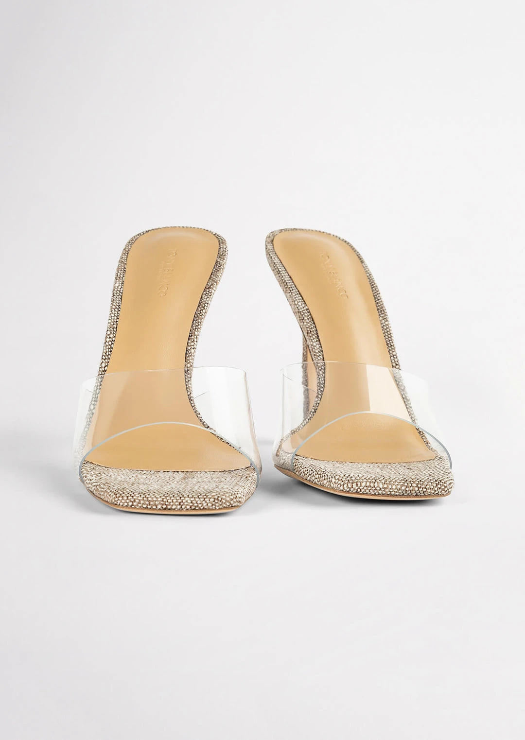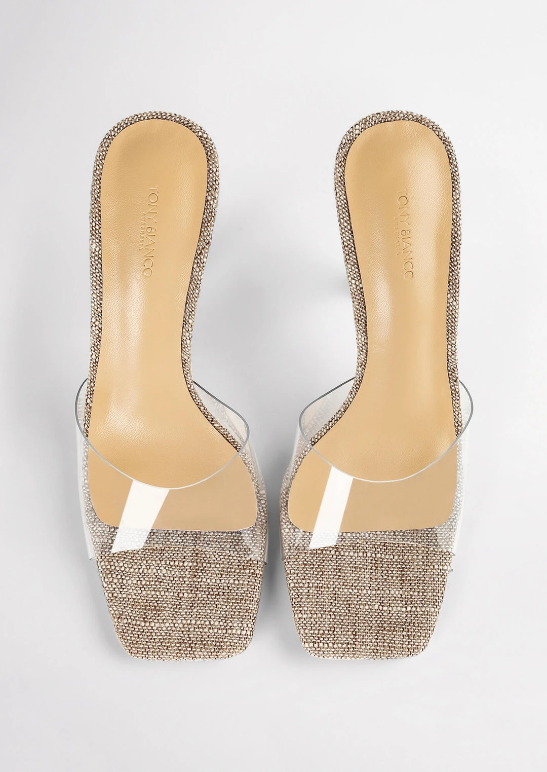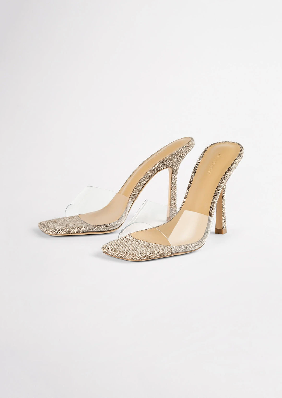 Slip straight into style with our Fame mules. Combining the best of trends, this style features a clear vynalite upper alongside a squared toe-shape and a textured linen fabric base. Finished with an essential cushioned sole and a slender stiletto heel for the ultimate show-stopper.