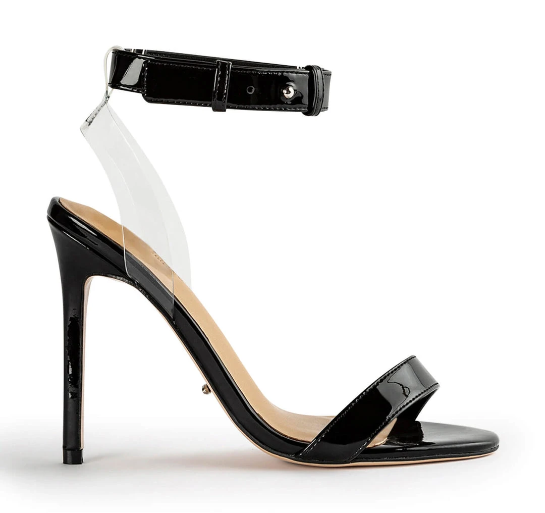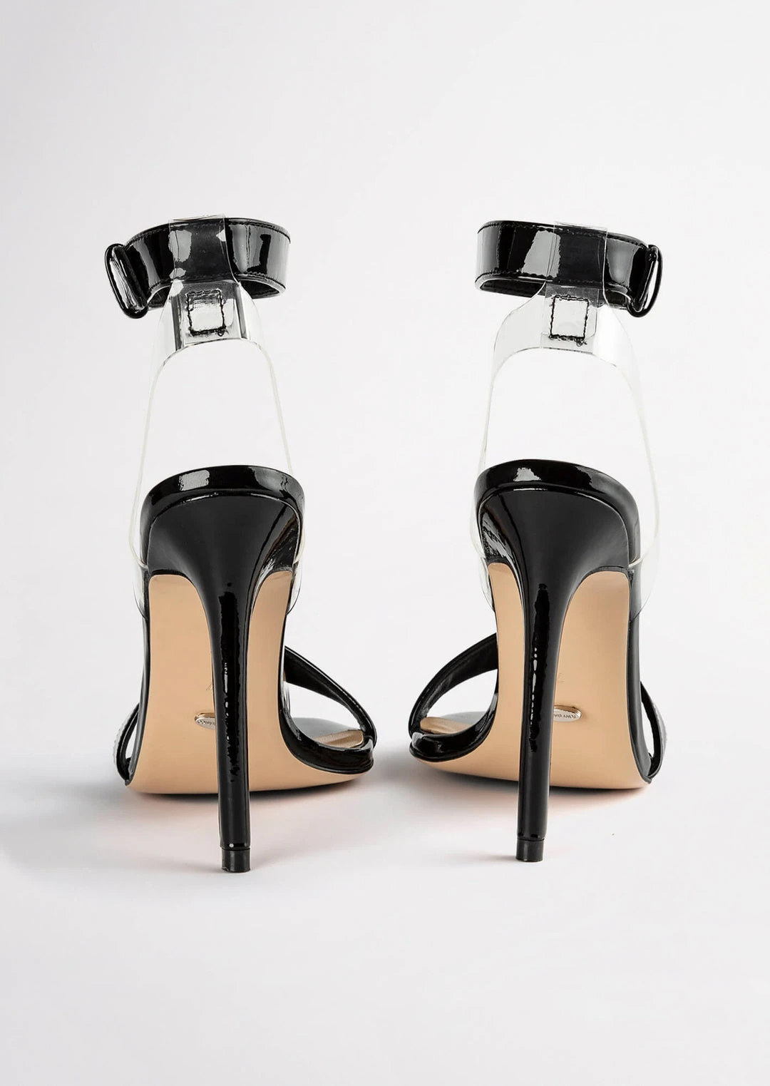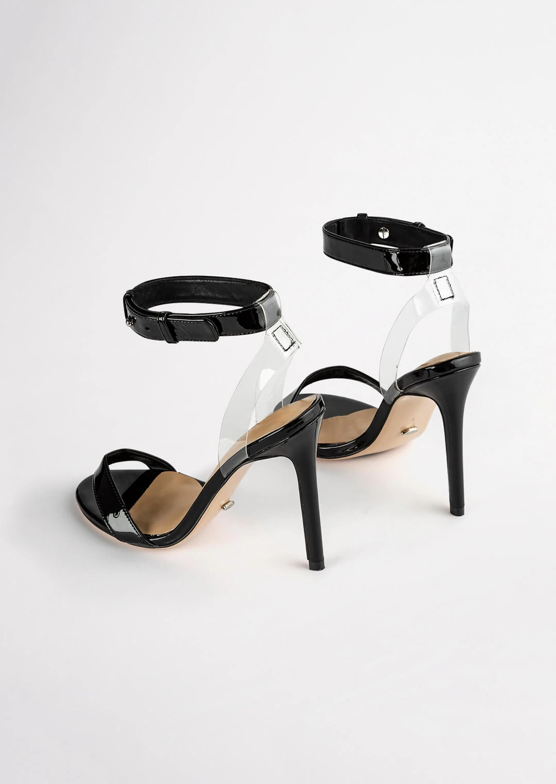 Say hello to your next go-to heels. The Kali strappy heels feature a hi-shine black patent body, with a sleek rounded toe-shape and is finished with a touch of see-through vynalite to the ankle for an effortless look. What’s not to love?