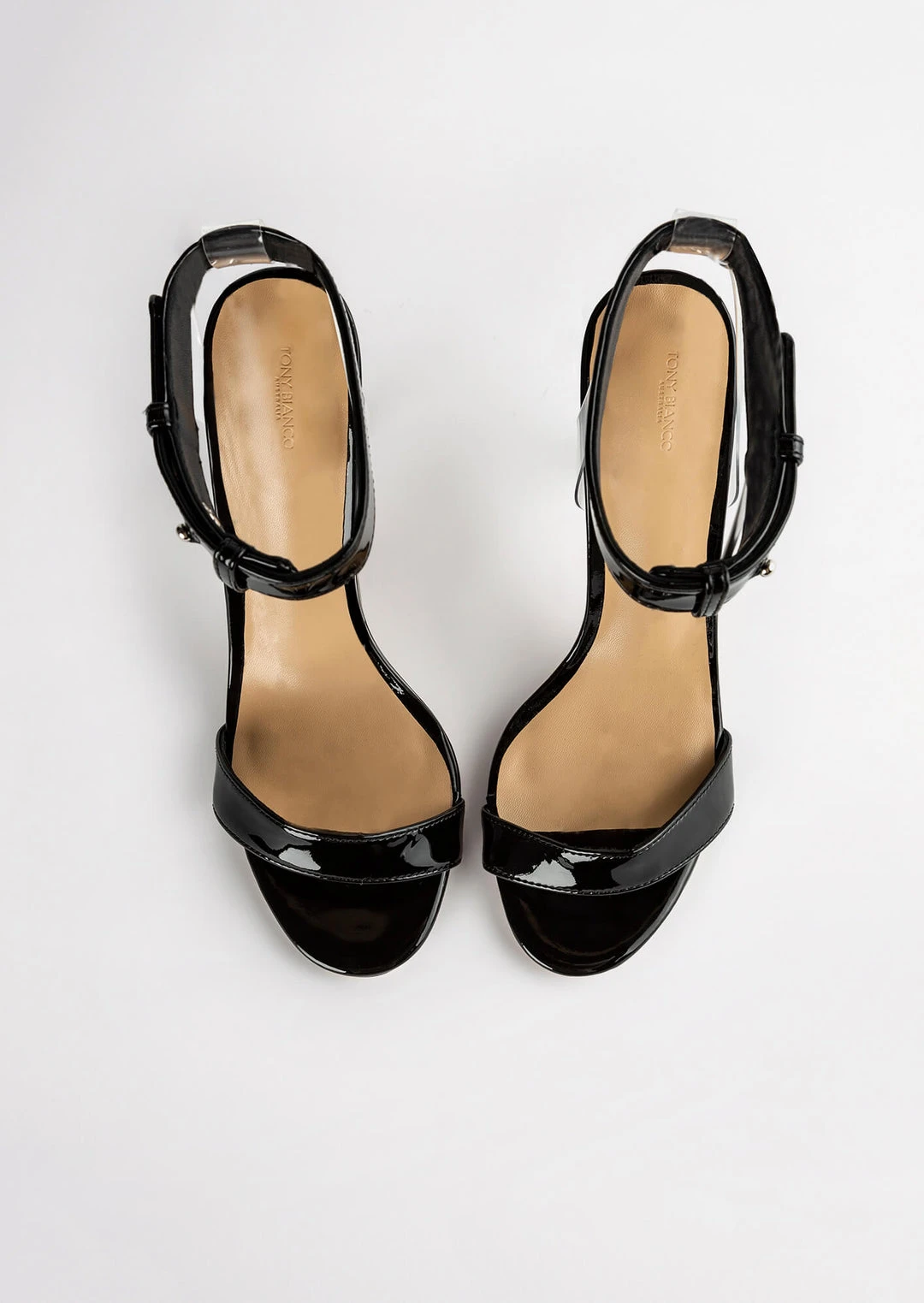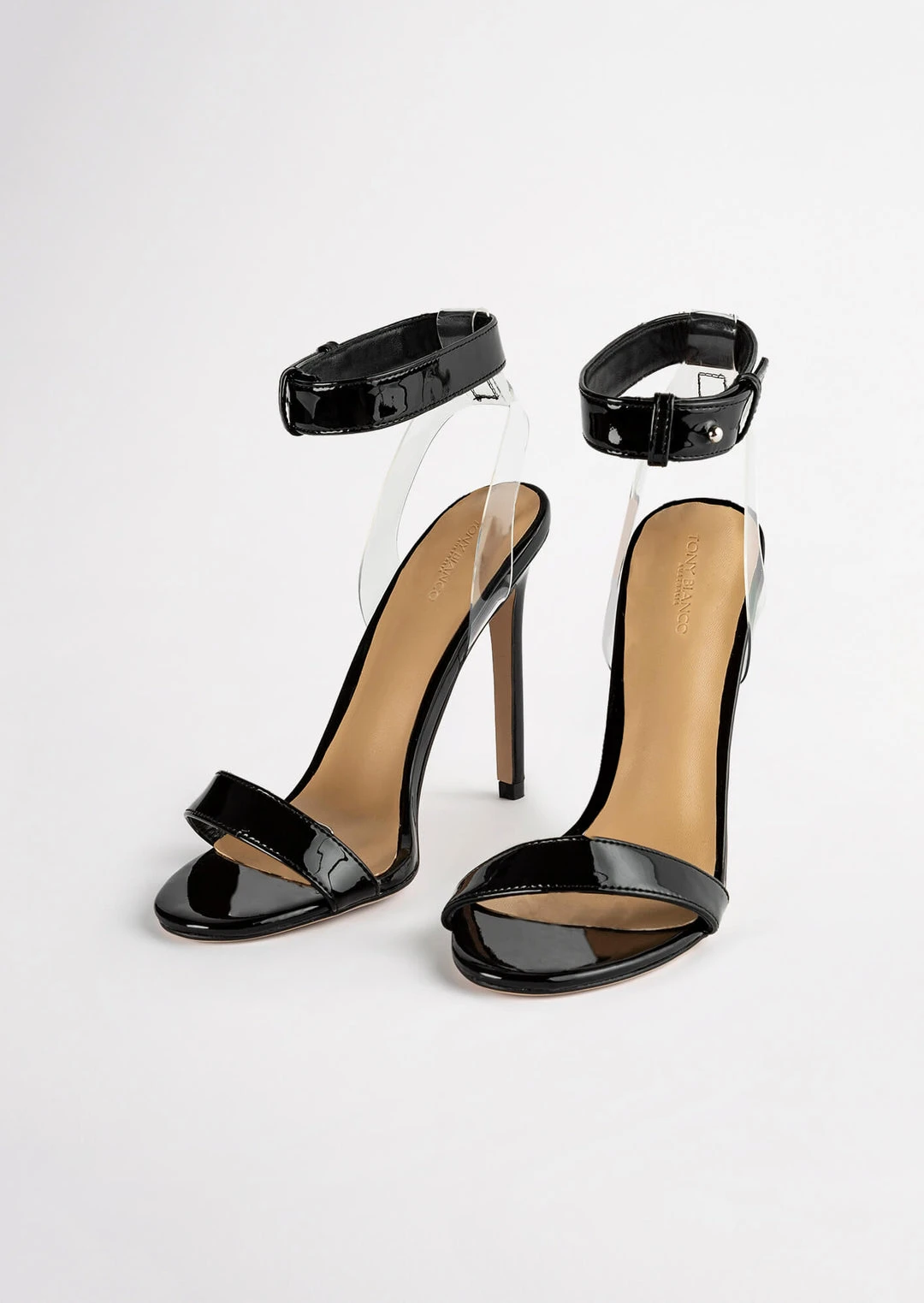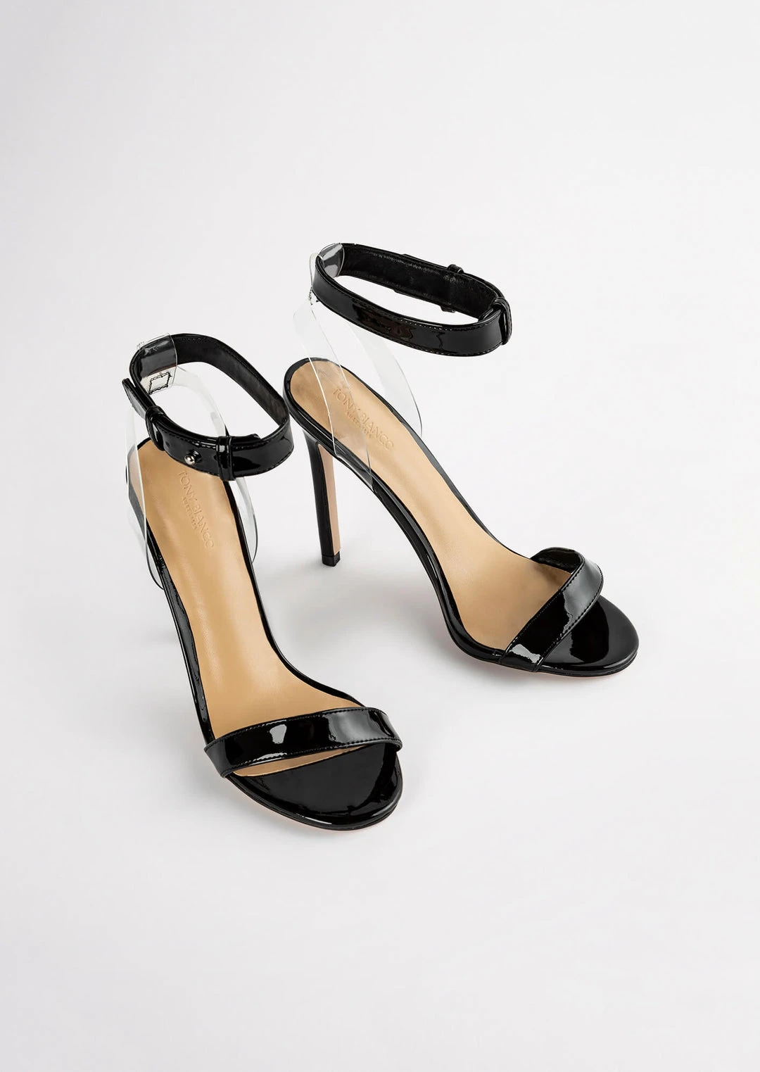 Say hello to your next go-to heels. The Kali strappy heels feature a hi-shine black patent body, with a sleek rounded toe-shape and is finished with a touch of see-through vynalite to the ankle for an effortless look. What’s not to love?