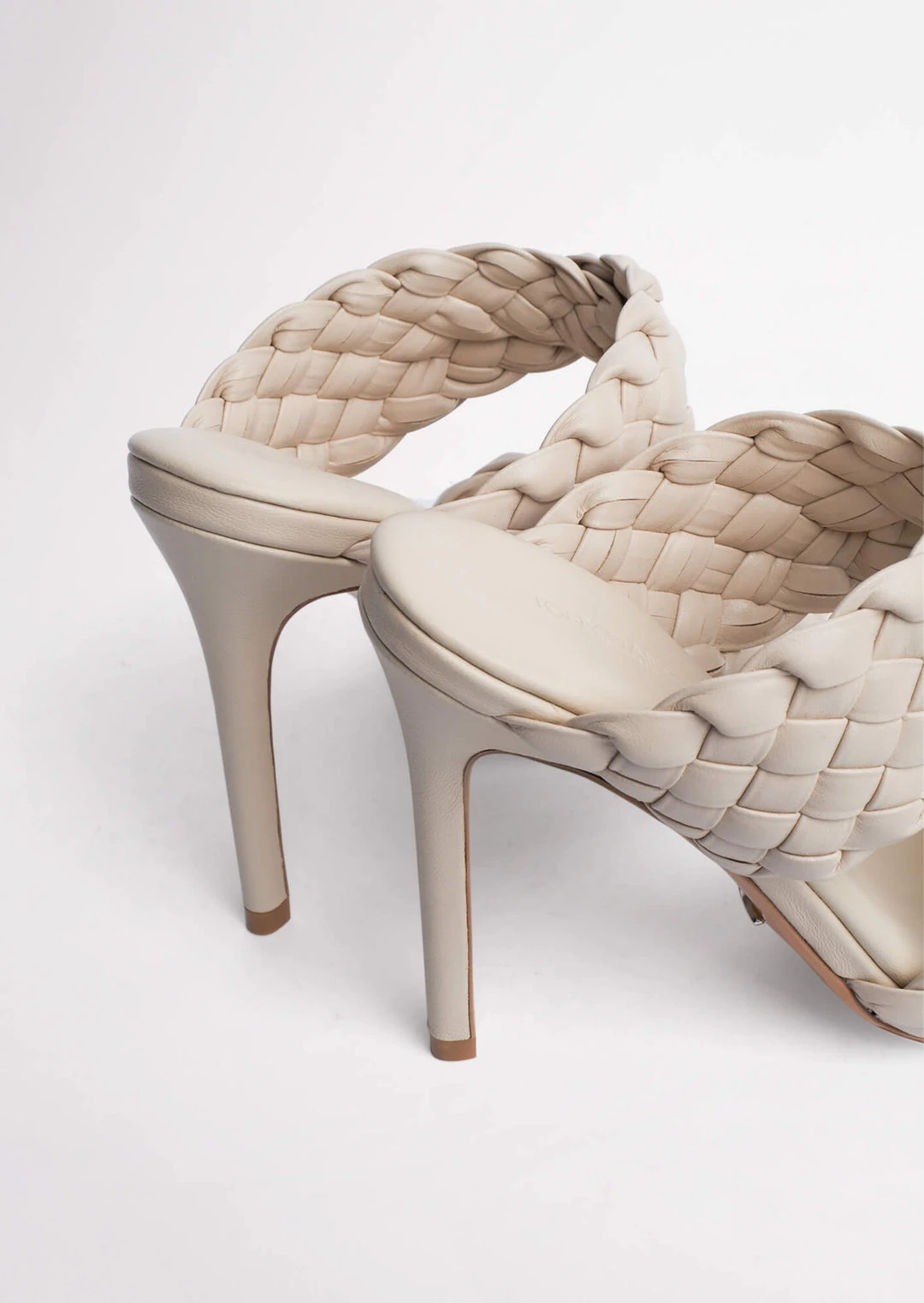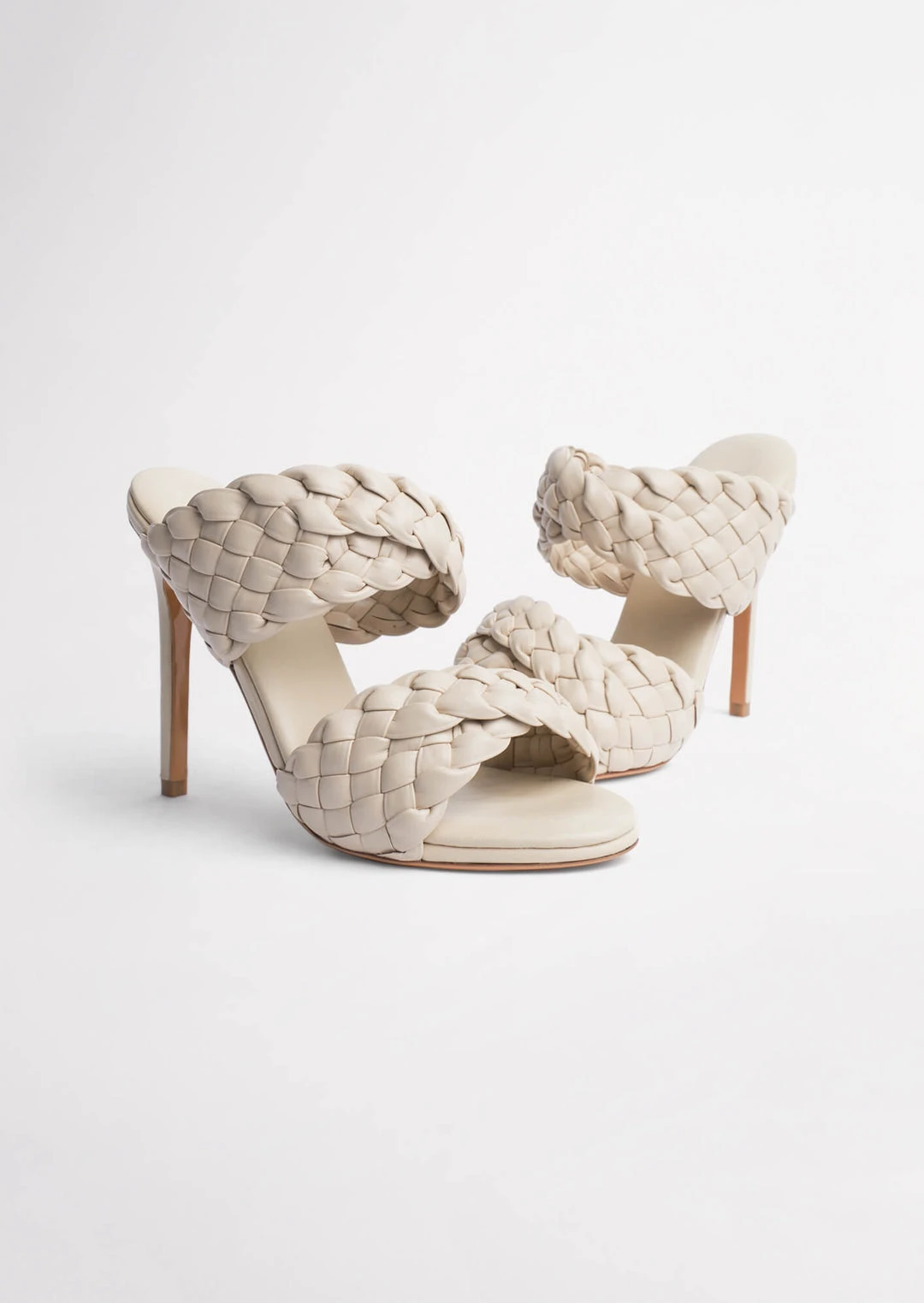 It’s all in the details. Meet our Kimberly stiletto mule. Designed with a striking woven upper, an open rounded toe-shape alongside an impressive 11cm stiletto heel. Finished with a cushioned sole for extra comfort.