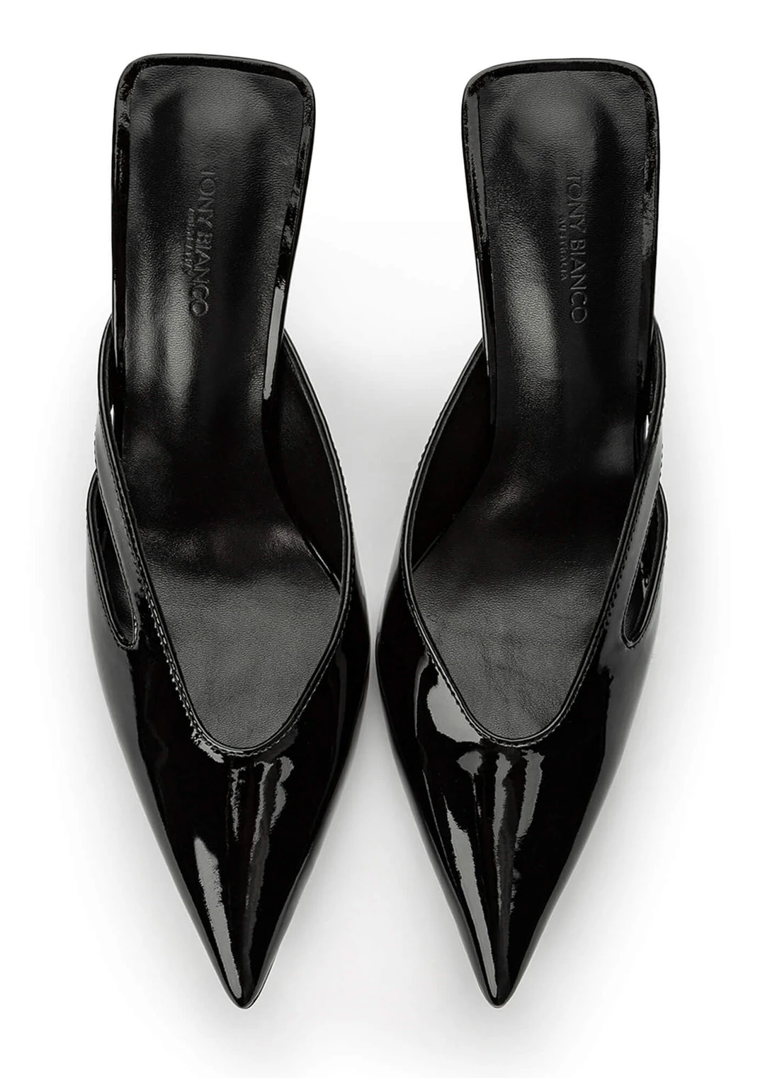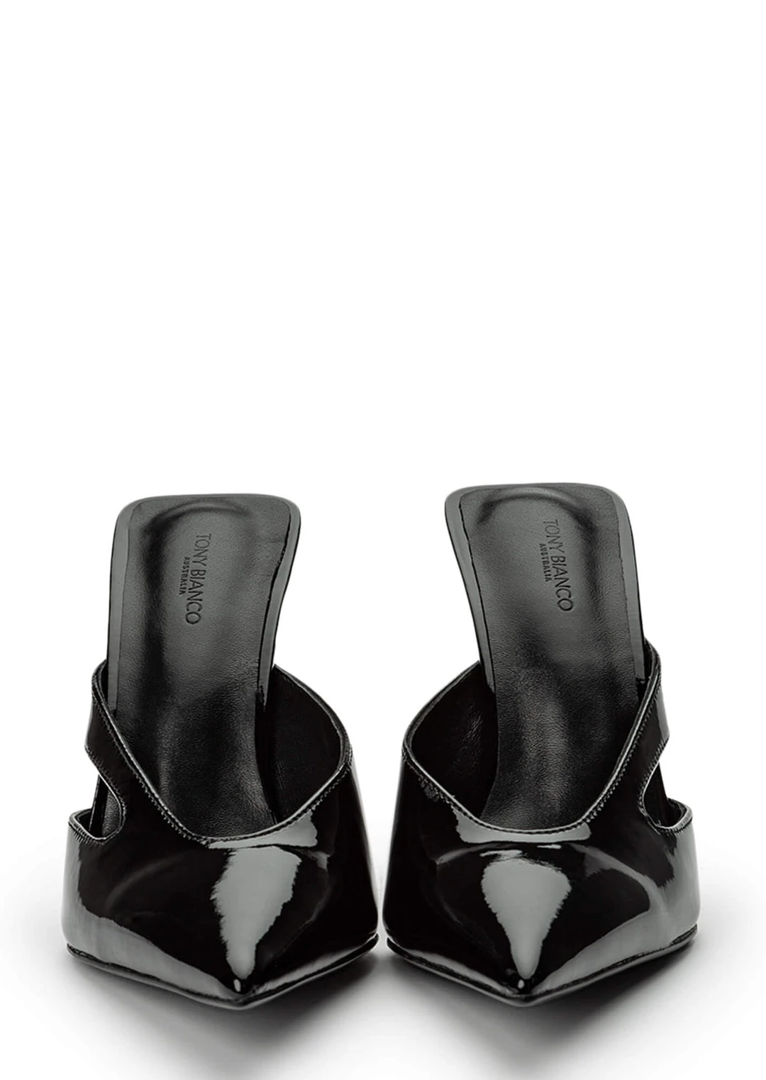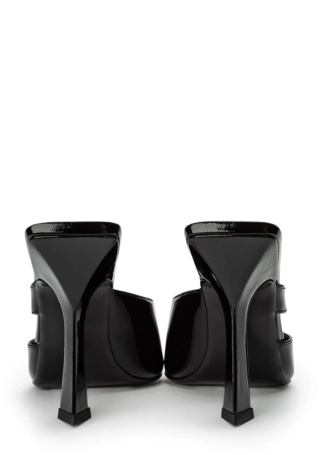 Want something classic with a subtle twist? Let us introduce you to the Princess heeled mules. Donning a black patent leather with a sleek stiletto heel, this style is sure to make a statement this season.