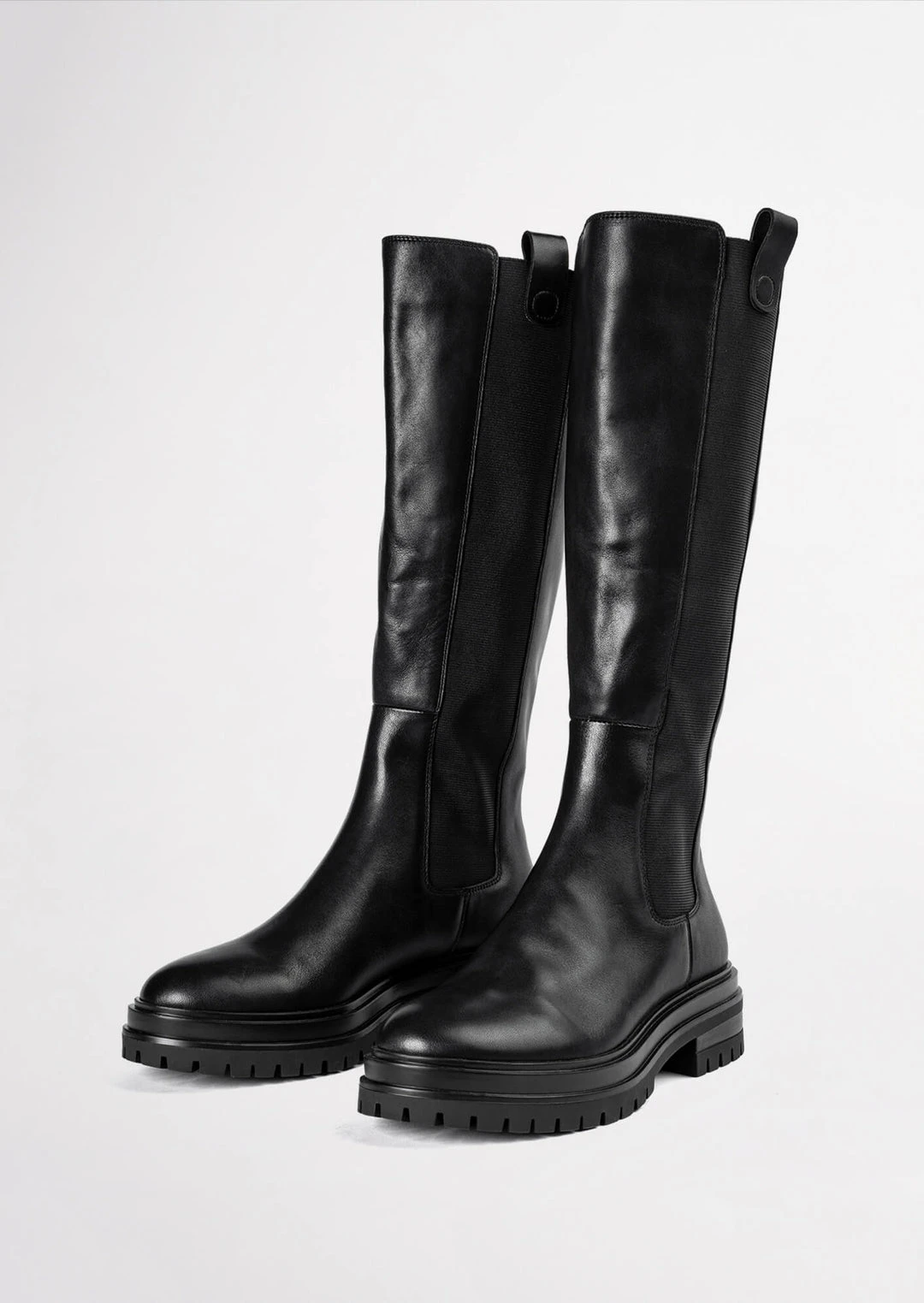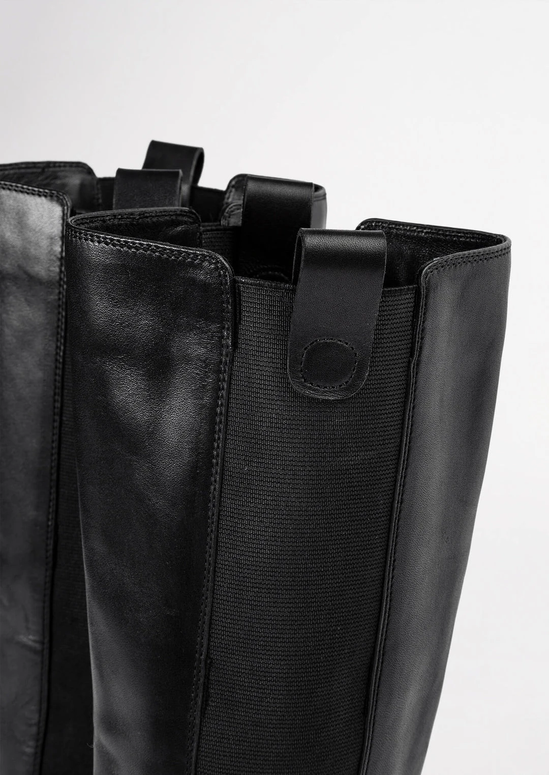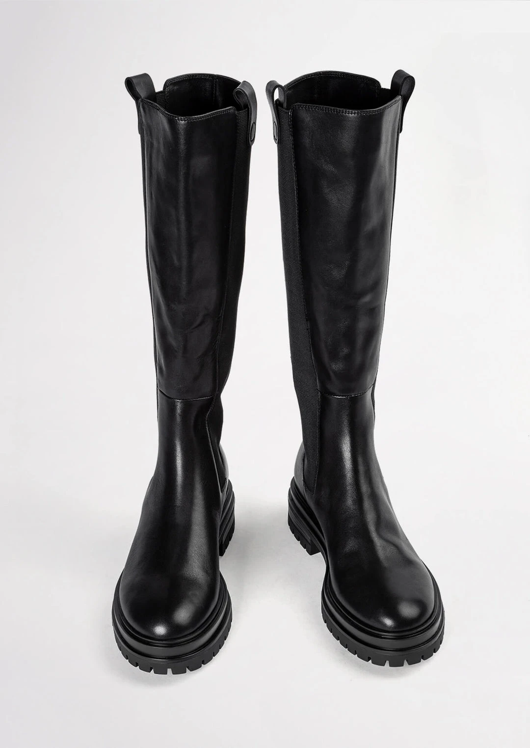 You can expect nothing but the best from our Winx knee-high black boot. Made with a premium leather upper and lining, this design features an inner elasticised panel, a comfortable rounded toe-shape, a top leather pull tab and a subtly slouched fit. Finished with a chunky exposed sole and a cushioned foot-bed for maximum comfort.