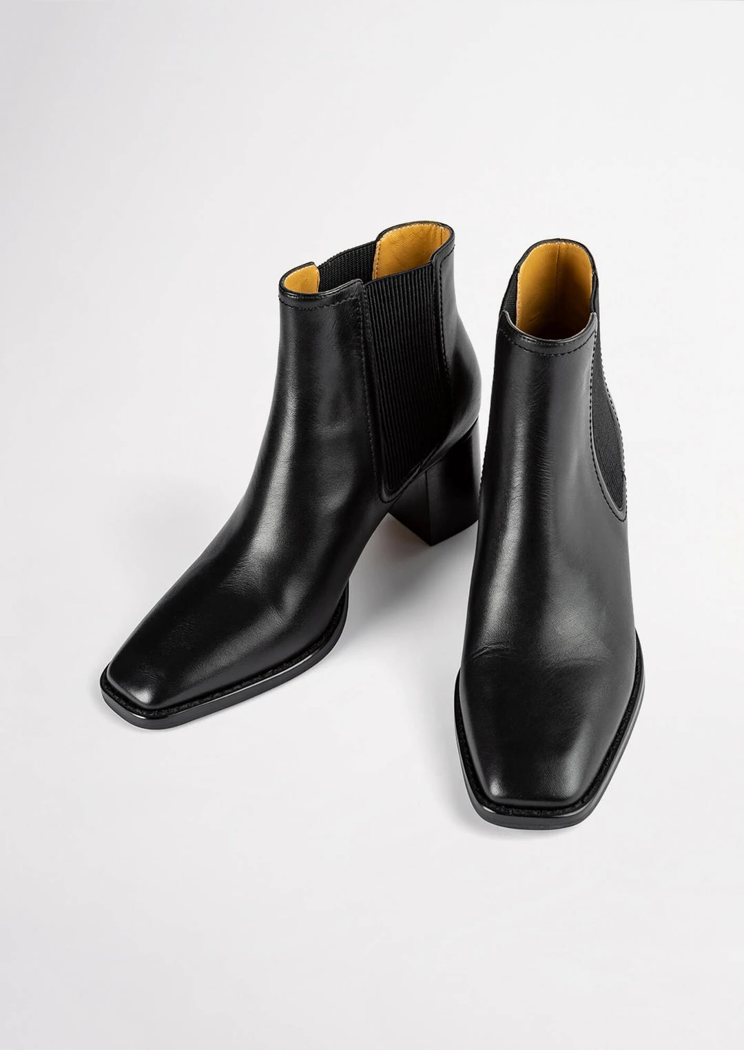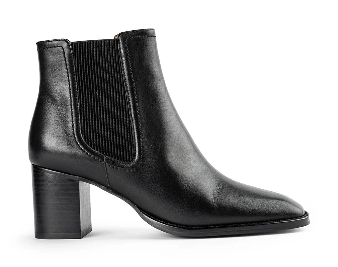 For a comfortable off-duty style look no further than the Wager ankle boot. Made with a quality black como leather, this boot is anything but basic – featuring a chic squared toe-shape, twin elasticised gussets and a sturdy block heel. Finished with a leather lining and cushioned sole.